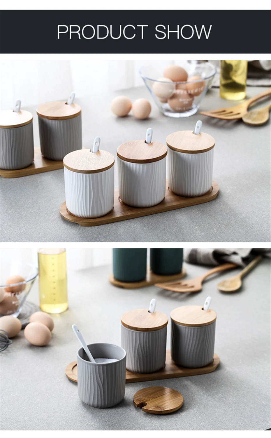 Классический керамический горшок для специй с рисунком дерева с ложкой и крышкой, бытовая бутылка для приправ, кухонный графинчик для масла, соли, перца