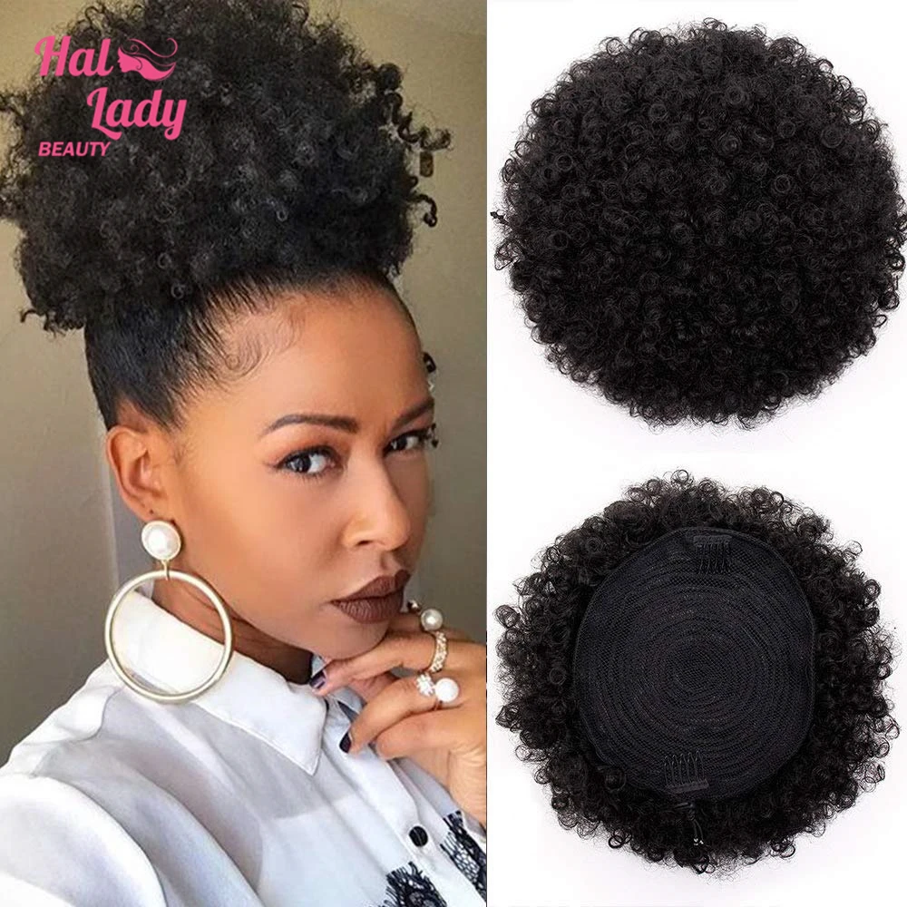 Настоящие Humam Волосы Короткие афро пышные волосы пучок шиньон для женщин шнурок конский хвост кудрявые волосы для наращивания на заколках