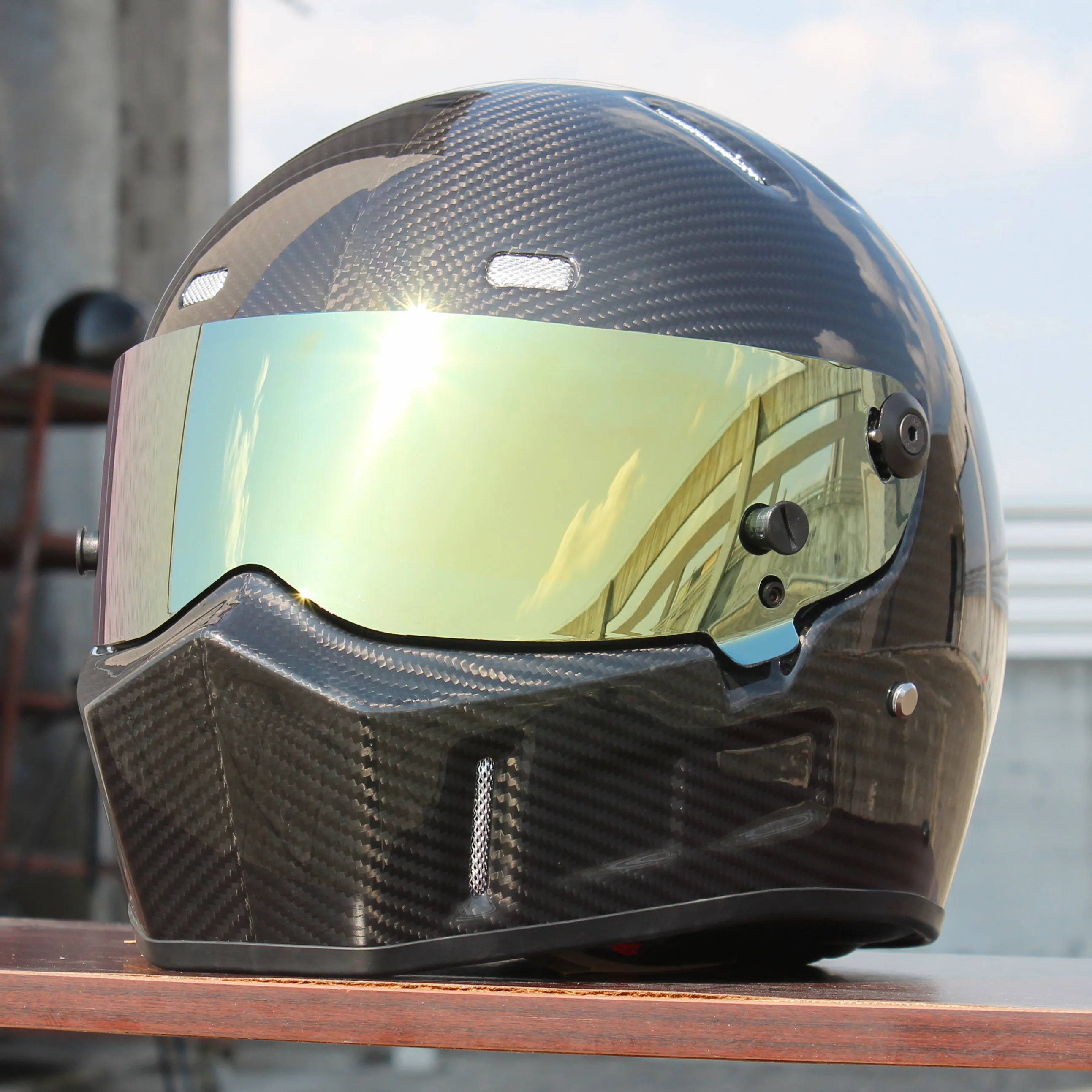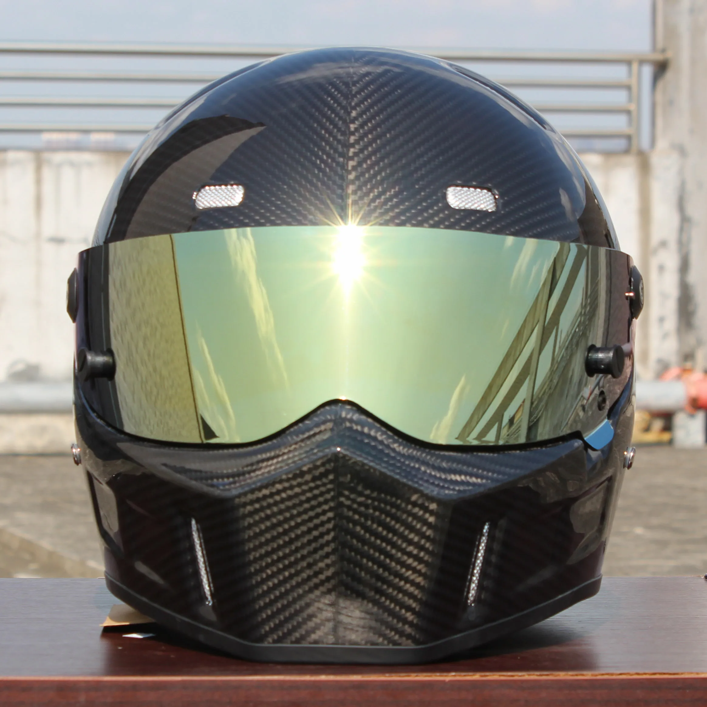Шлем унисекс для мотогонок, однообъективный шлем из углеродного волокна, мотоциклетный шлем с полным лицом, защитный шлем, откидной шлем