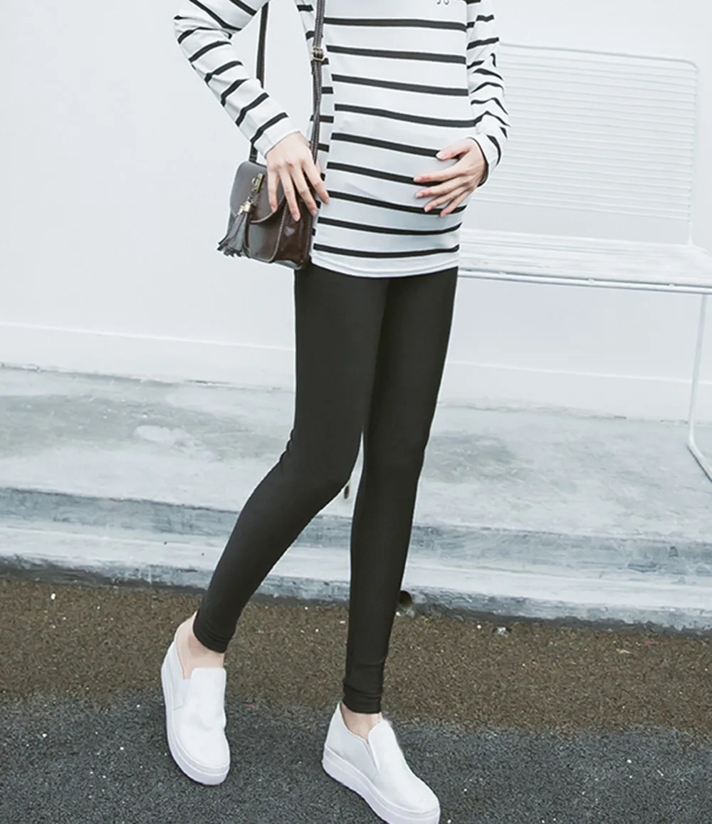 Эластичные Леггинсы для беременных с защитой живота; брюки; однотонные узкие брюки