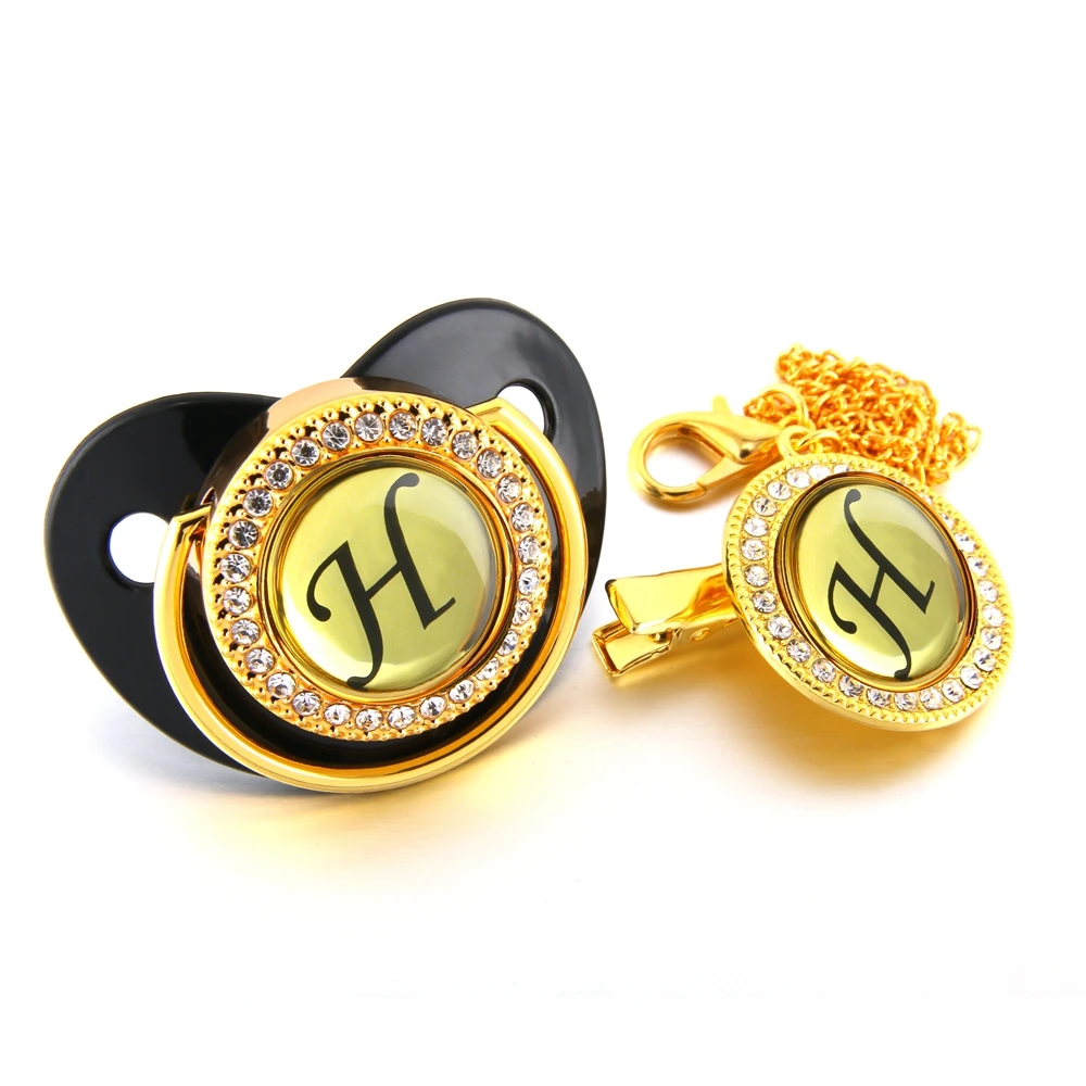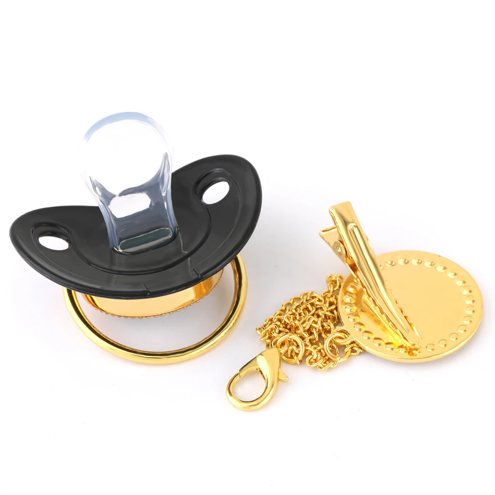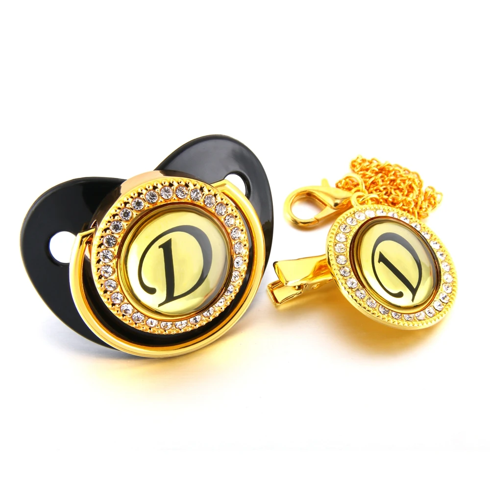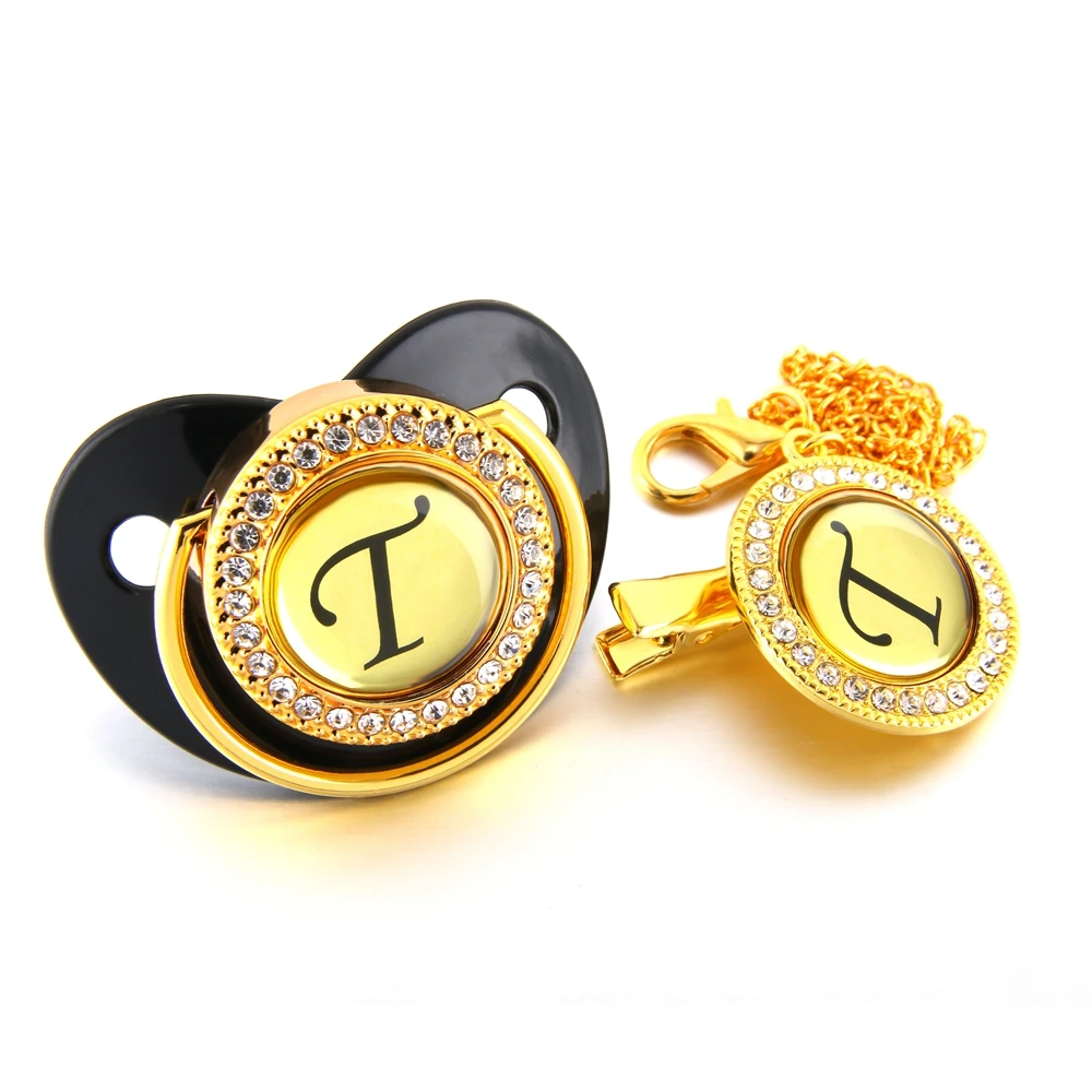 Золотисто-черная пустышка с надписью и зажимом для пустышки Роскошные Стразы без пустышки BPA