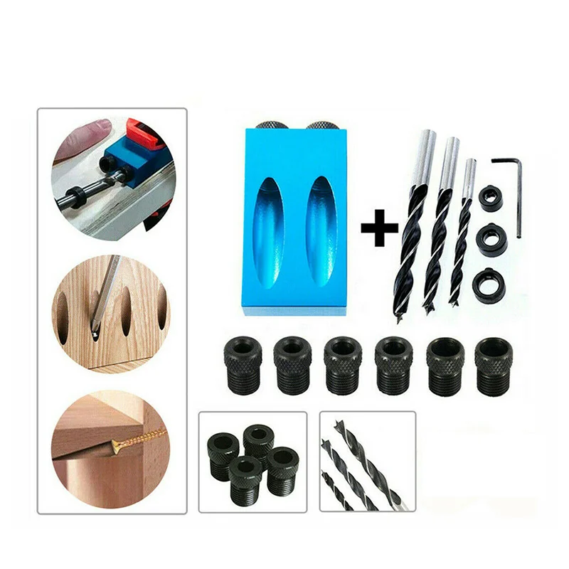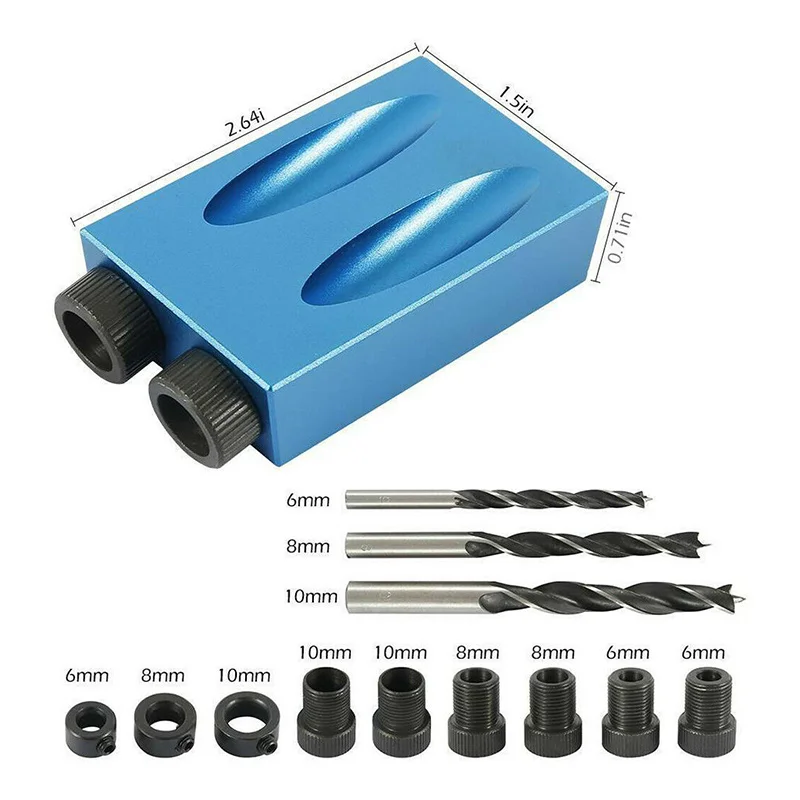 Деревообрабатывающий набор направляющих с наклонным отверстием, 15 градусов, набор направляющих для сверления под углом, Мини карманная направляющая для отверстий, джиг, DIY Инструменты для плотницких работ, Дырокол