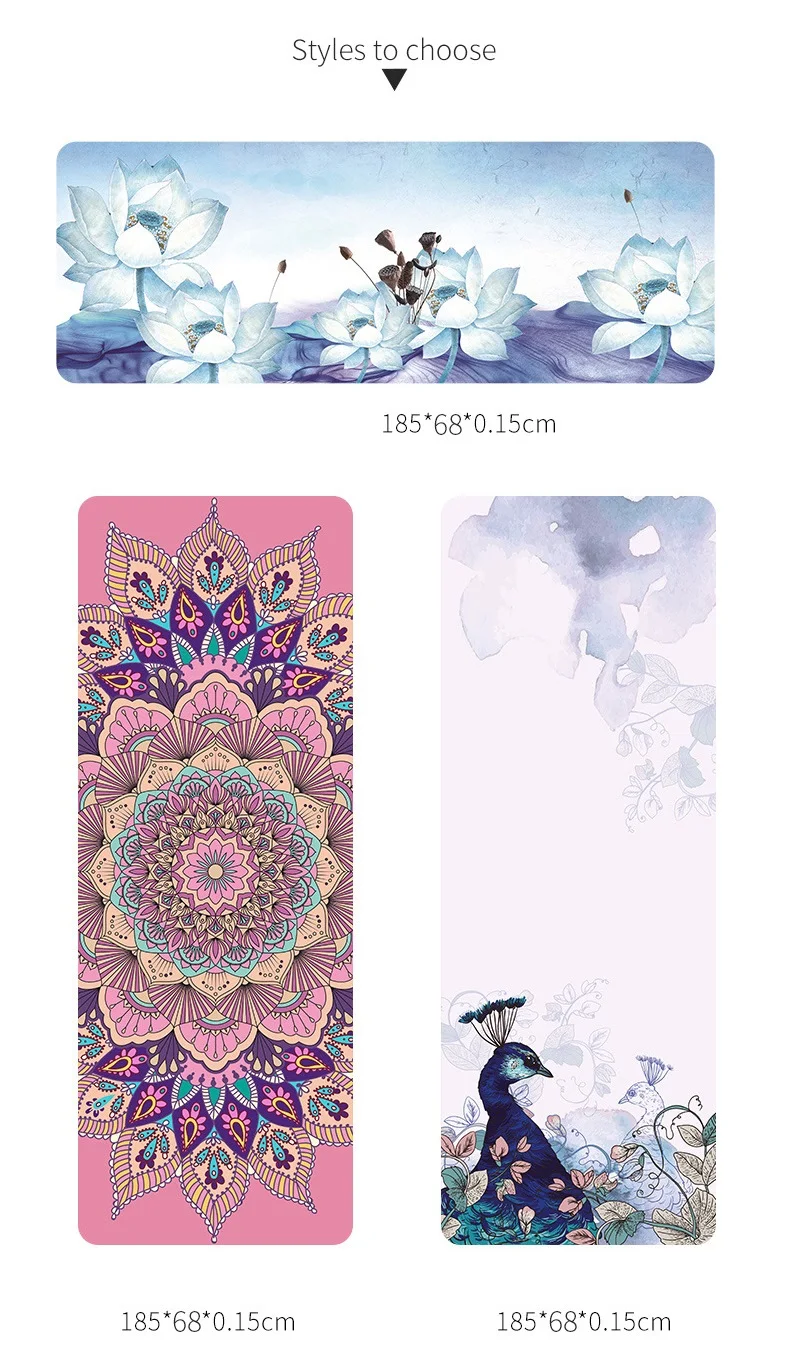[Название] Коврик для йоги из замши и резины [Характеристики] 185*68*0,15 см [Цвет] датура, лотос, космическое звездное небо, павлин, Серый слон [Материал] замша + натуральный каучук 1 * коврик для йоги