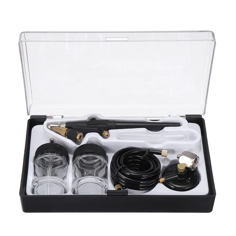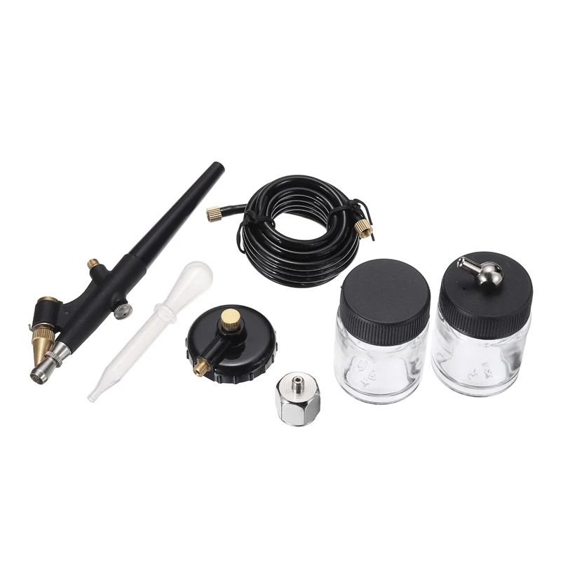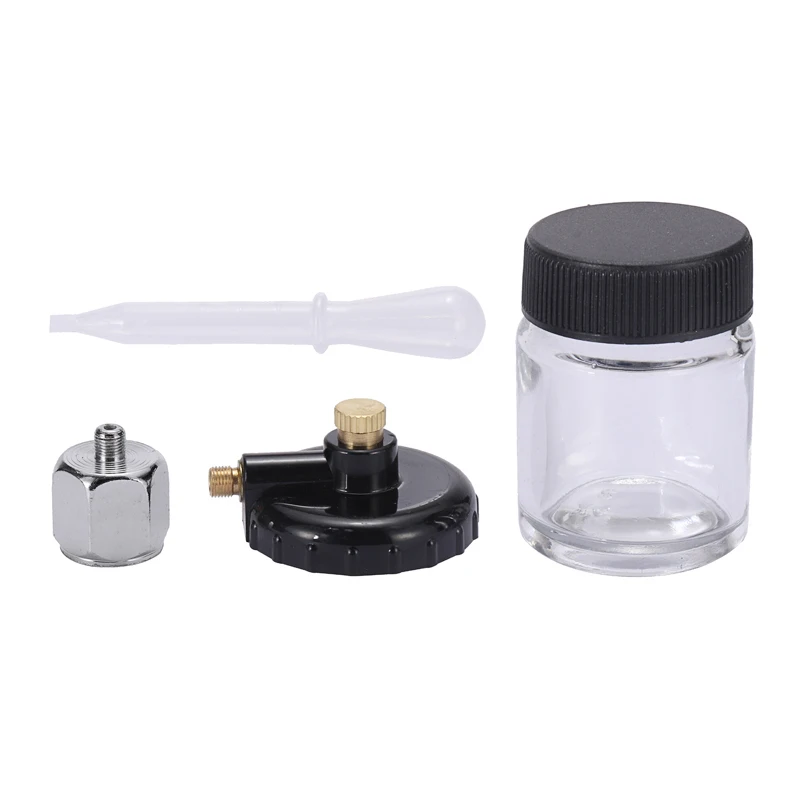 Внешняя смесь, поток воздуха и краски отдельно от аэрографа и чашки чернил.