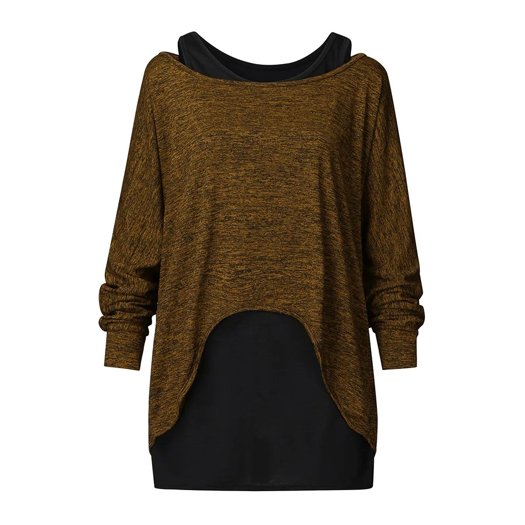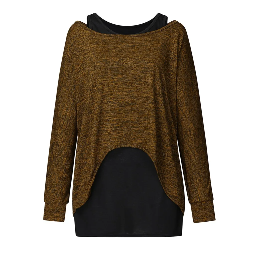 Женский модный комплект из двух предметов: жилет с длинным рукавом + футболка, повседневный Топ, блузка