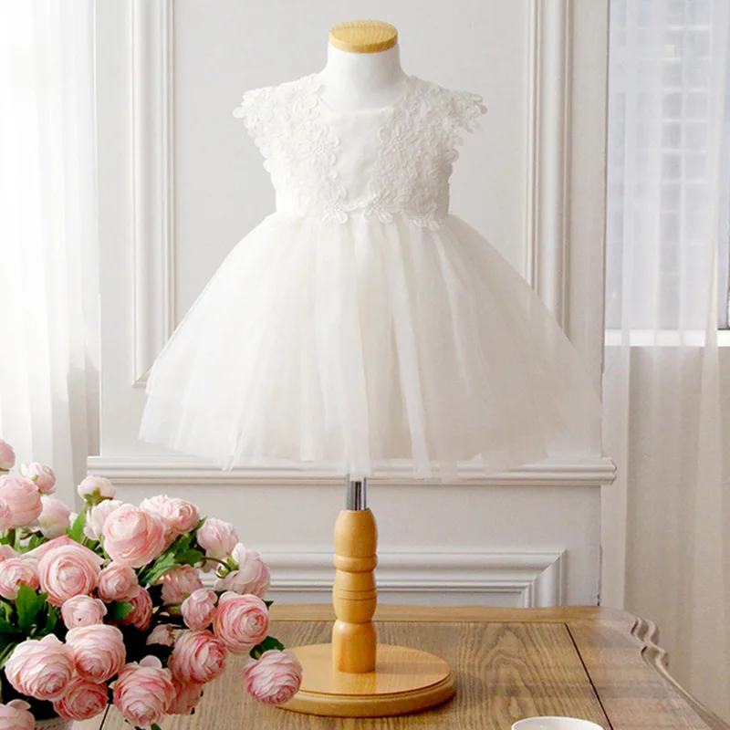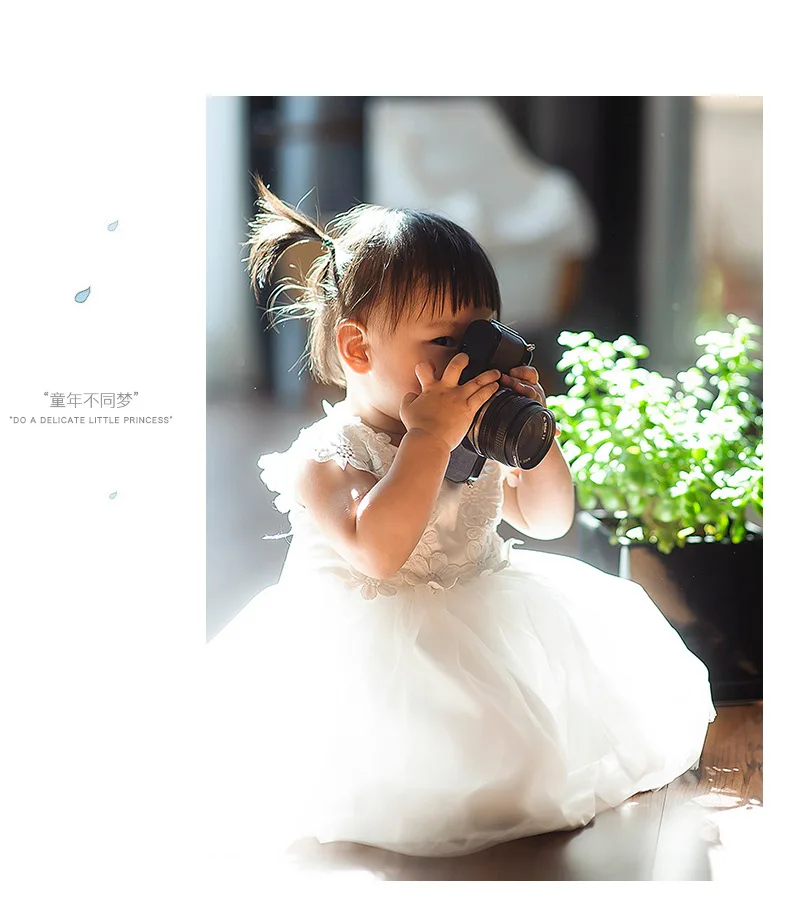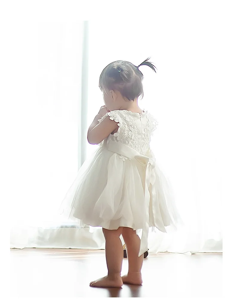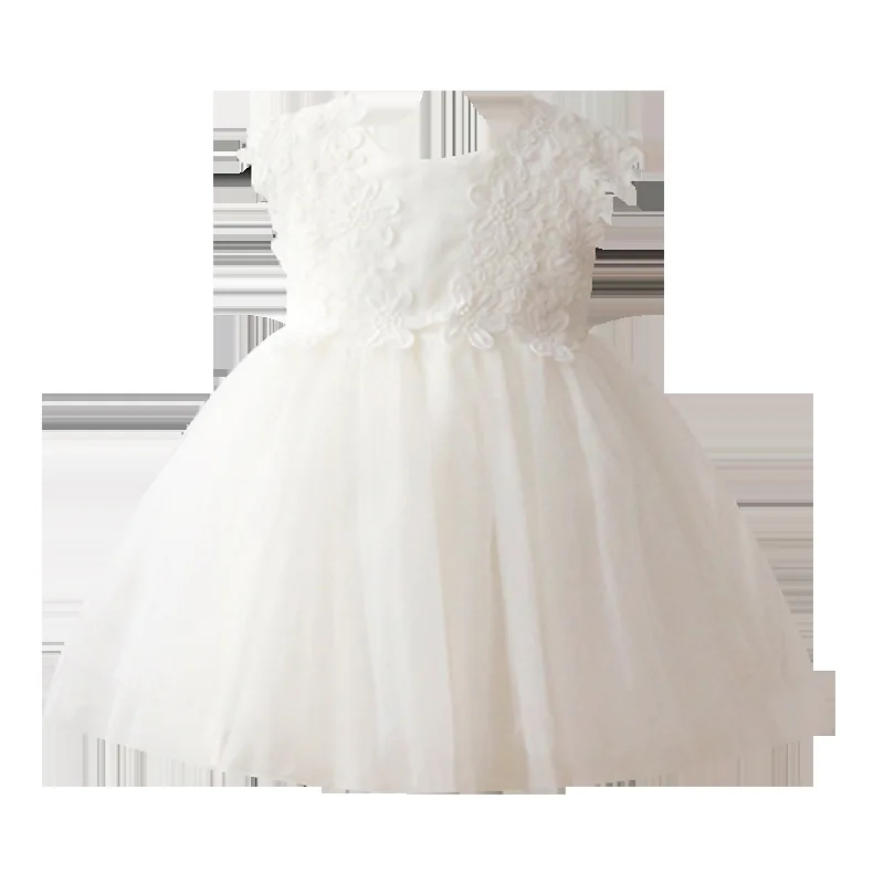 Белое летнее платье с цветочным рисунком для маленьких девочек; Фатиновые кружевные платья с аппликацией для маленьких девочек на первый День рождения; Одежда для крещения для маленьких девочек