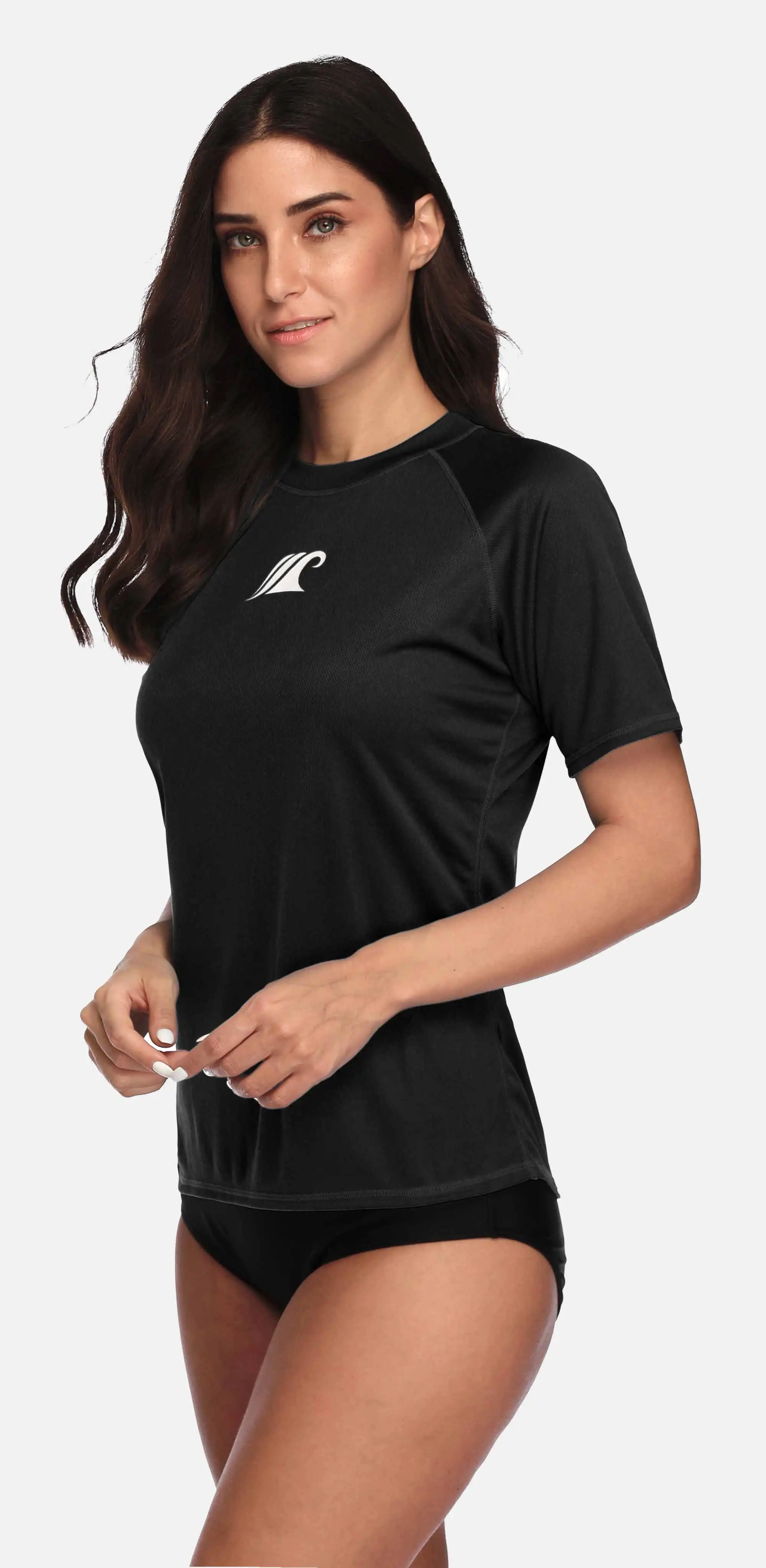 Женская быстросохнущая одежда Attraco, топ для серфинга с коротким рукавом, рубашки для бега на велосипеде, пляжная одежда, купальник