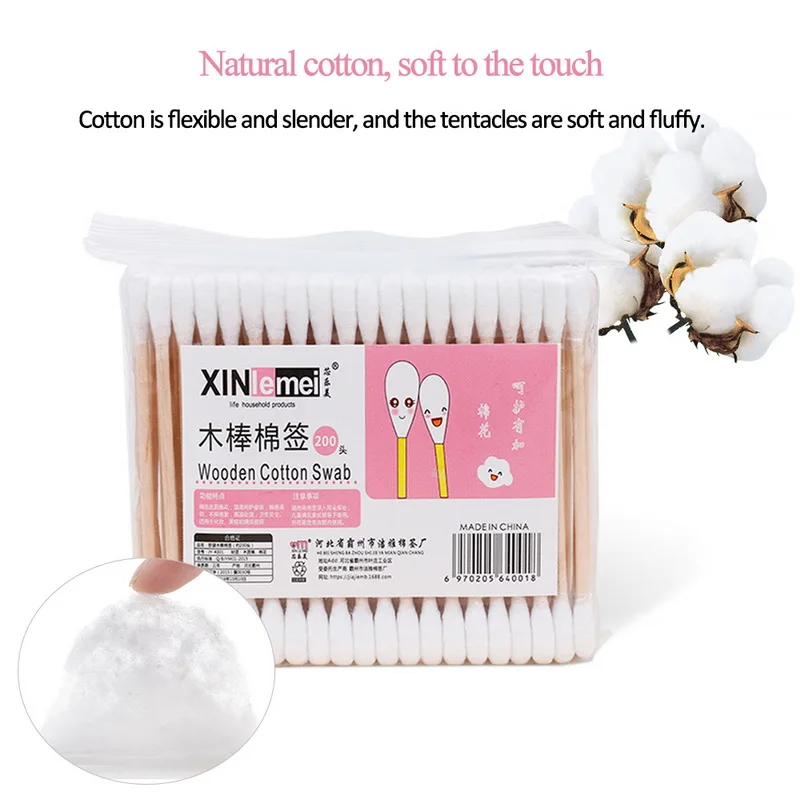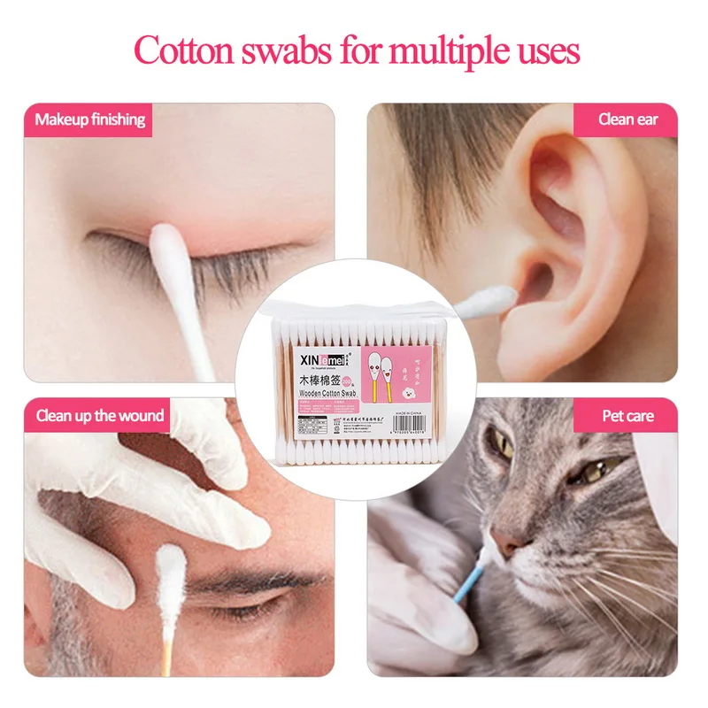 100 шт ватные тампоны с двойной головкой, одноразовые мягкие гигиенические тампоны для макияжа, мягкая сумка, деревянная палочка, косметическая палочка для макияжа, для носа, чистка ушей, косметика
