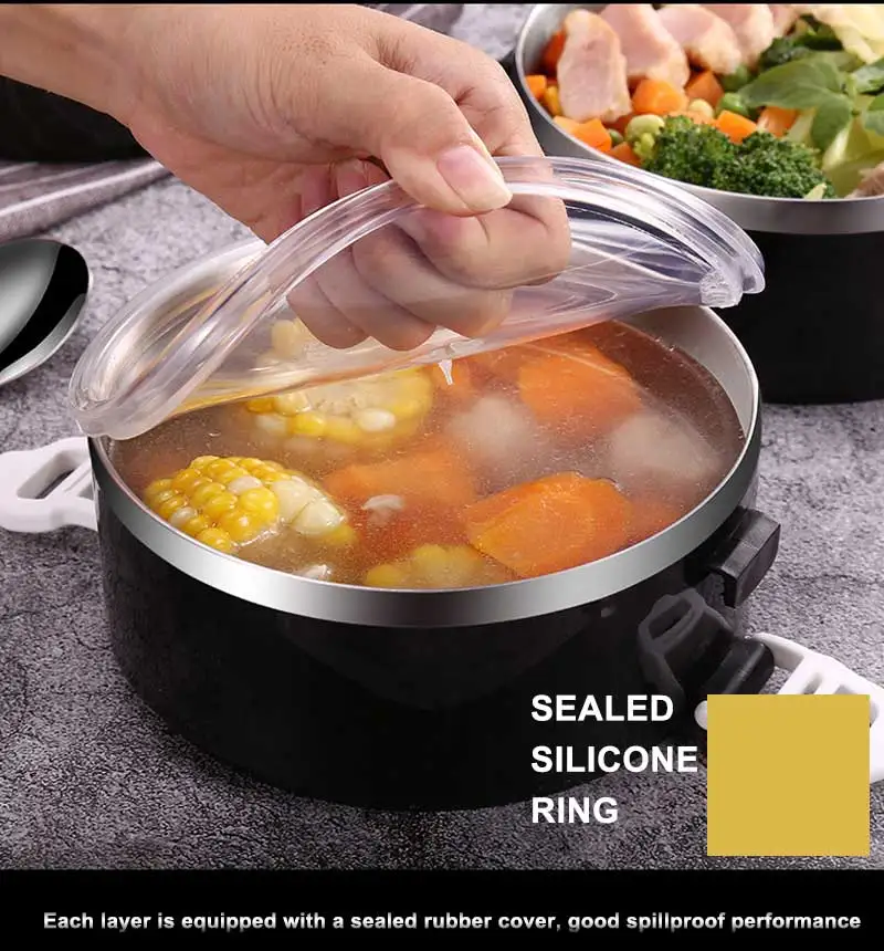 Этот Ланч-бокс изготовлен из аустенита 304(18/8) из нержавеющей стали и пищевого полипропилена, никогда не ржавеет, нетоксичен, не содержит свинца, безопасен для пожизненного использования Поставляется с термопакетом, внимание, а не простой мешочек на рынке, эта Термосумка специализируется на дизайне ланч-бокса Sunhanny, сохраняет тепло почти на один час, идеально подходит для пикников, походов, поездок и активного отдыха Бесплатный Портативный набор столовых приборов Sunhanny поставляется с ланч-боксом, идеально подходит для путешествий, кемпинга, прохлады, офиса Каждый слой герметичен, герметичен 1 слой = 1 коробка 2 слоя = 2 коробки 3 слоя = 3 коробки + (3-слойный) термопакет + 1 набор столовых приборов 4 слоя = 4 коробки + (4-слойный) термопакет + 1 набор столовых приборов