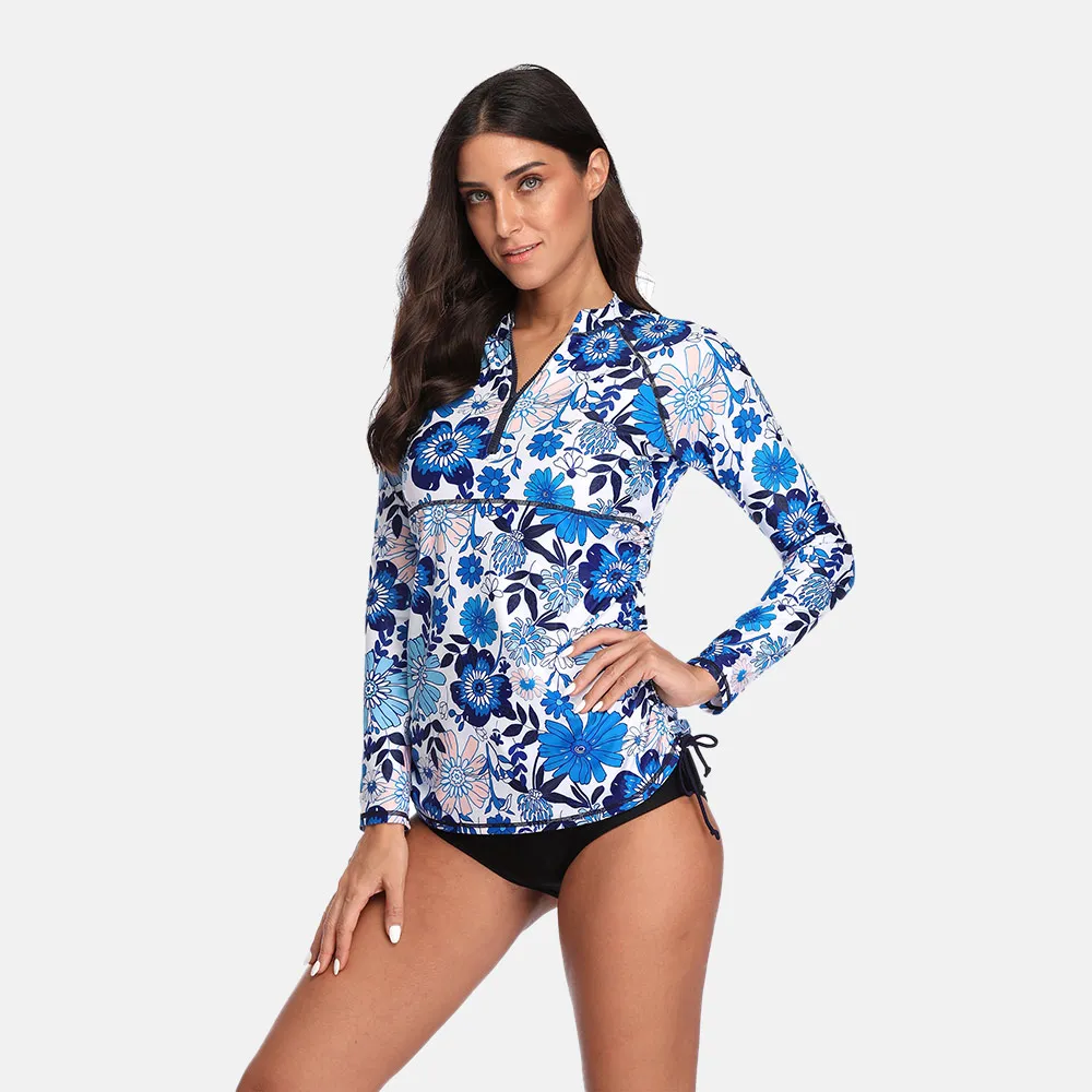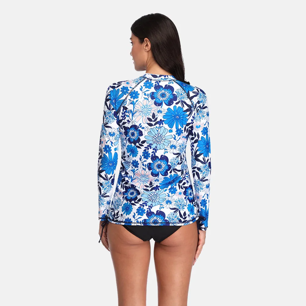Attraco Для женщин сыпь гвардии рубашки купальники с Длинным Рукавом Рашгард Топ Цветочный принт сбоку перевязана Surf topswimsuit, купальный костюм с защитой от ультрафиолета 50 +, защита от ультрафиолета