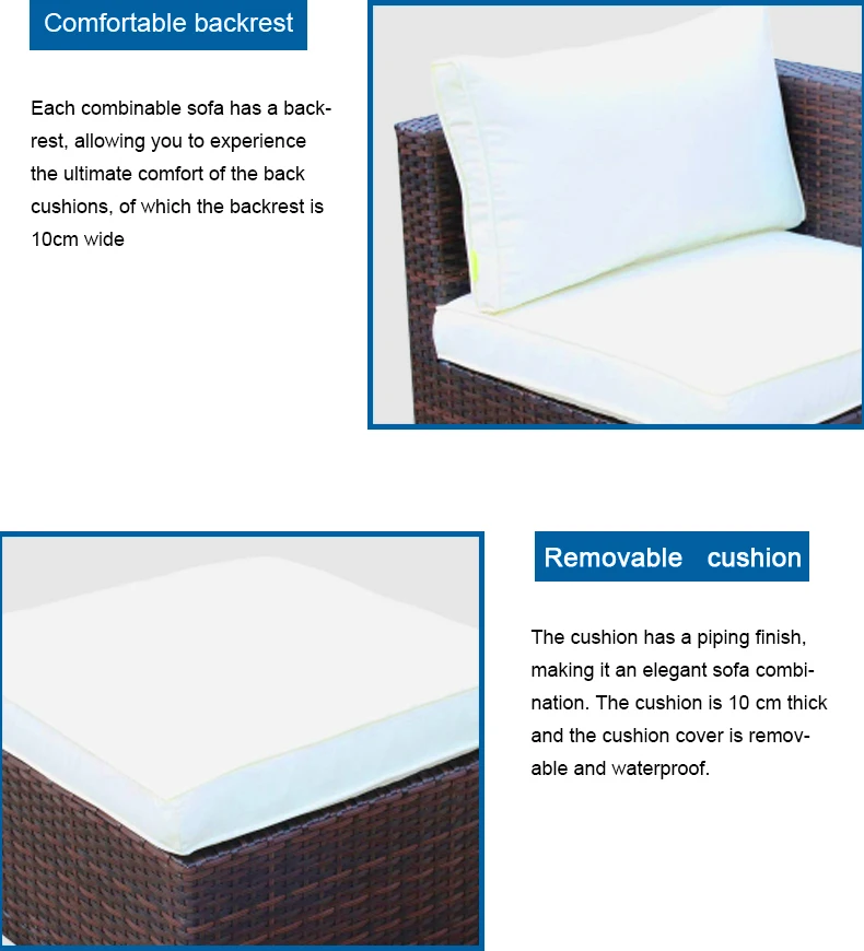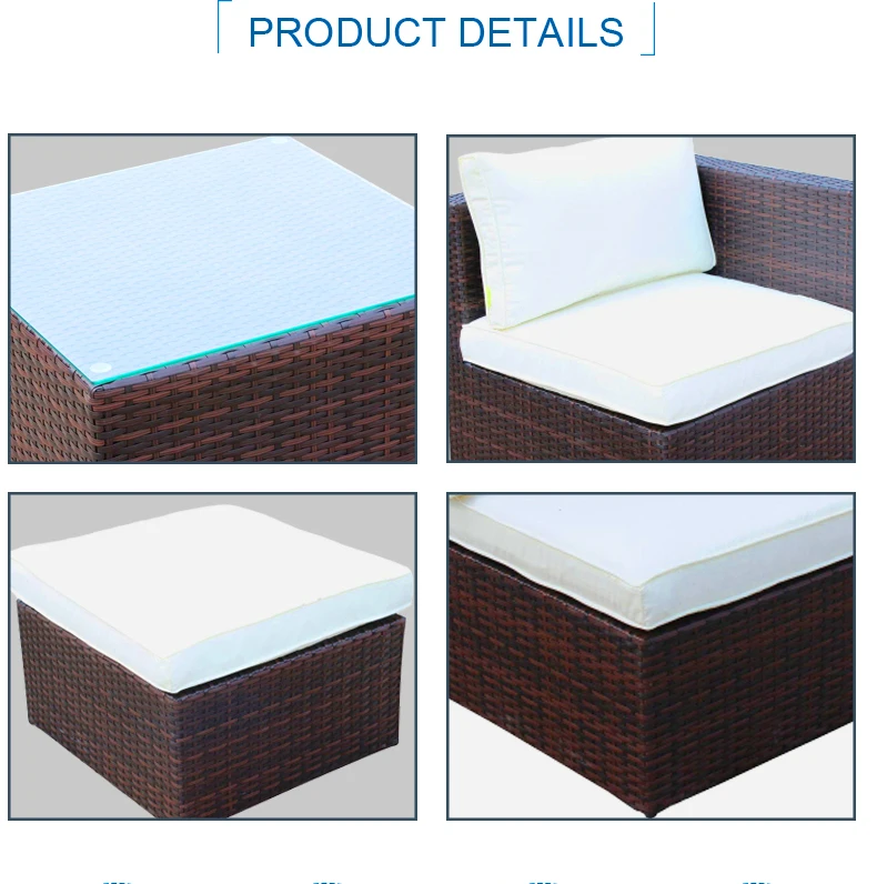 Цвет: Шоколадный Цвет сиденья: не совсем белый Материал:Polyrattan Материал рамы: железный каркас + напыление Материал чехла для подушки: отделка трубопроводов Количество посадочных мест:6 Толщина сиденья:8 см