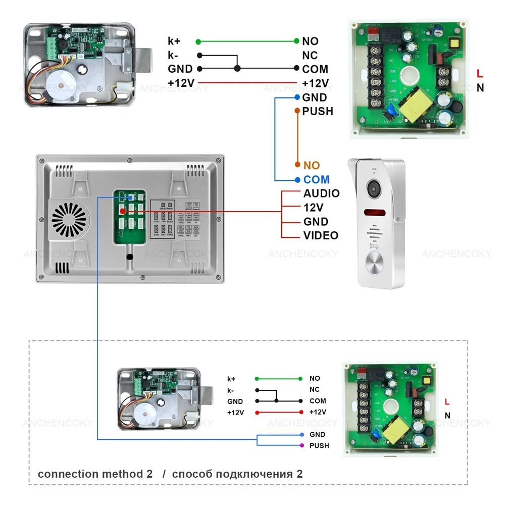 Anchencoky 7 дюймов видео-телефон двери + 160 ° широкоугольный вызова Панель + электрический замок комплект