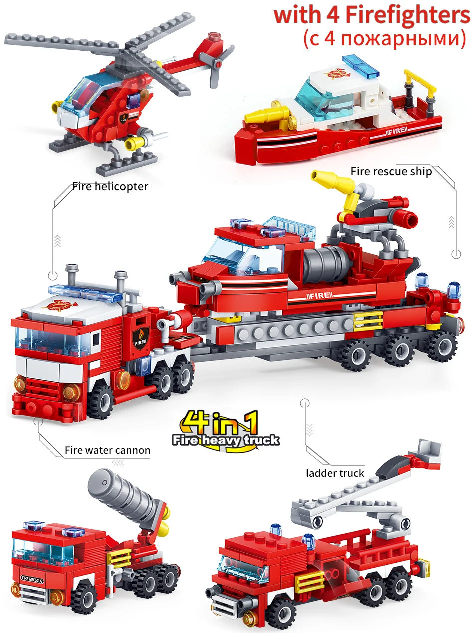 Название блоков: 4в1 348 шт противопожарный набор с 4 куклами от Huiqibao