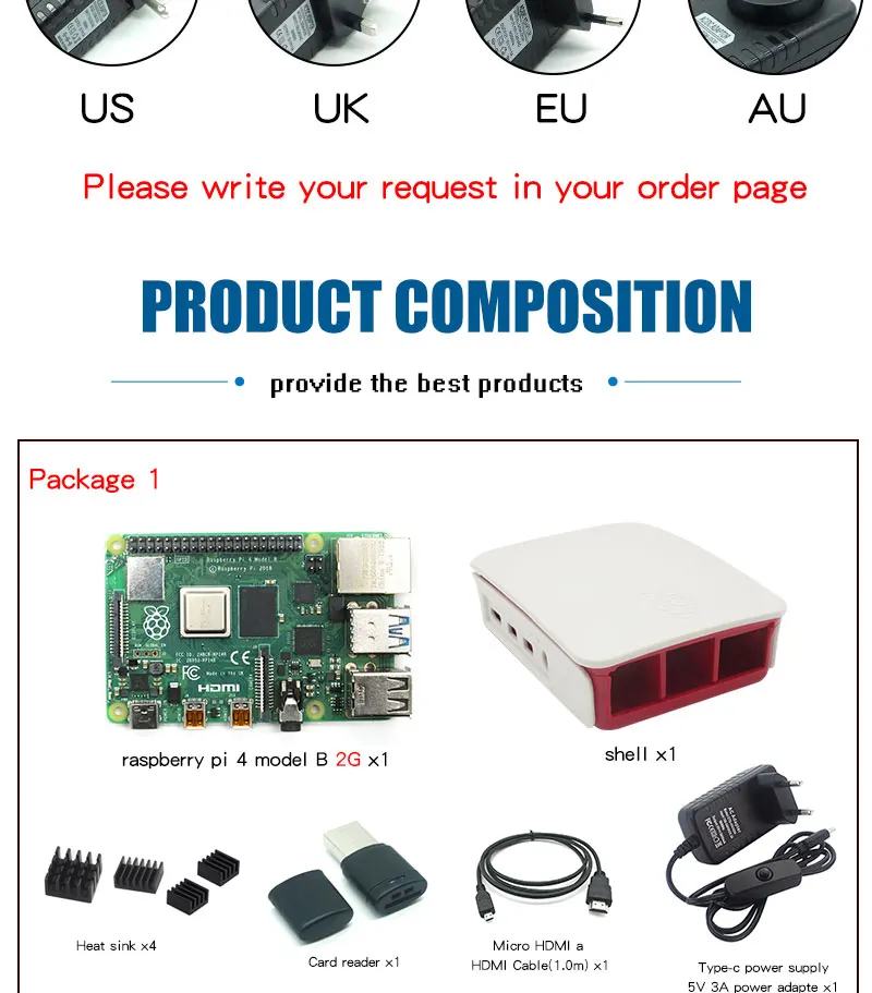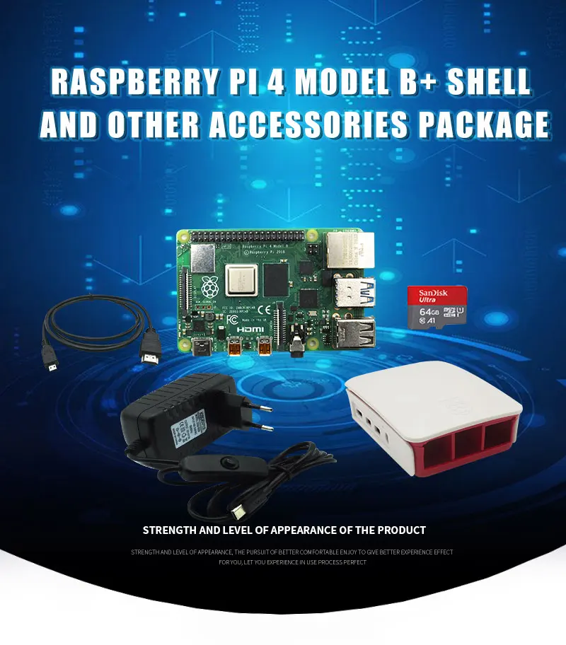 Raspberry Pi 4 модуль B 2 ГБ 4 ГБ ОЗУ + карта памяти 64 ГБ + адаптер 3A + корпус ABS + HDMI + радиатор для Raspberry pi 4B
