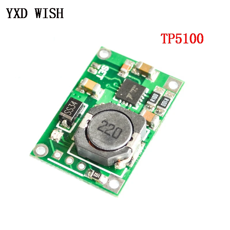TP5100 имеют 5V-18V Широкий диапазон входного напряжения, двойной батареи при непрерывной зарядке малым током светодиодный индикатор заряда в предзарядка, постоянный ток, постоянное напряжение Трехфазная система, предварительно ток заряда при непрерывной зарядке малым током светодиодный индикатор ток заряда через внешний резистор регулировки, максимальный ток зарядки до 2 А. TP5100 с частотой 400 кГц режим переключения позволяет использовать меньшее внешнее устройство Suo и большой ток зарядки по-прежнему поддерживать меньшее количество тепла.