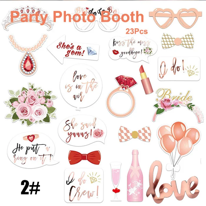 Новинка 23 шт., свадебный реквизит для селфи невесты, розовое золото, свадебные вечерние аксессуары для душа, VA88