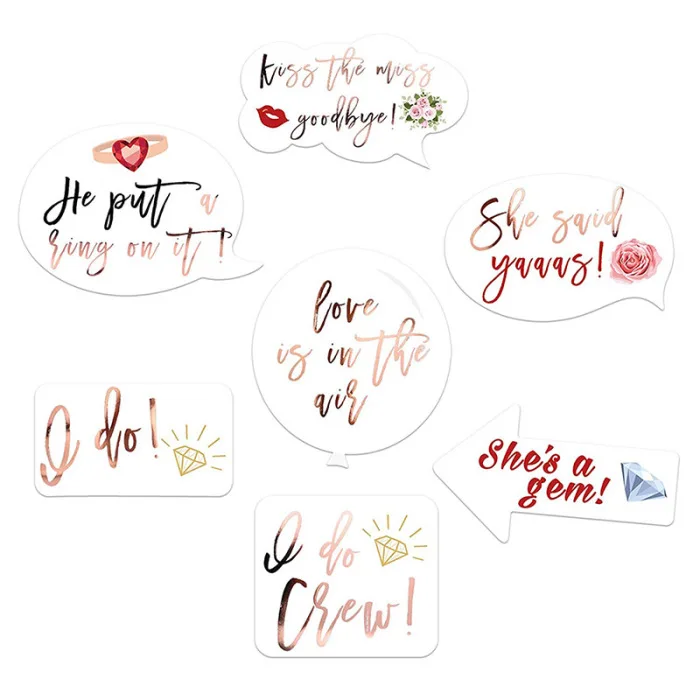 1,23 шт свадебный душ игра Photo Booth Реквизит-розовое золото вечерние реквизиты фото стенд, различные дизайны-короны, бриллиантовое кольцо, невесты и команды невесты очки, я, любовь в есть, она сказала "да".