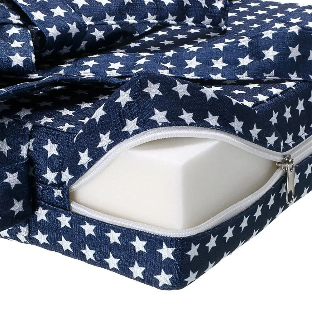 Изготовлено из тонкой льняной ткани, подушка моющаяся и прочная, дарит вам нежное прикосновение. Внутреннее ядро-это белая губка высокой плотности, которая является экологически безопасной, прочной, неплоской и может использоваться в течение длительного времени. Удобно и надежно застегивать широкий ремешок на стул. Он может решить такие проблемы, как детская столовая, стул не достаточно высокий и стул холодный.