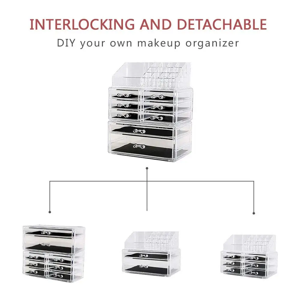 Акриловый Витринный Шкаф Ювелирных изделий и косметические ящики для хранения акриловый косметический Дисплей Макияж Организатор Коробки чехол ящиками Топ чехол Бесплатная DIY группы хранения Коробки