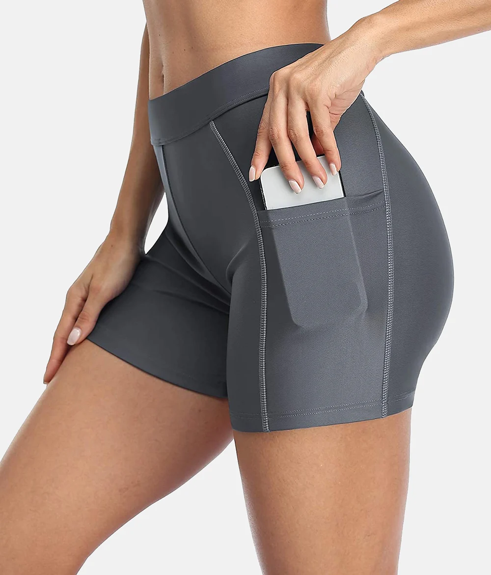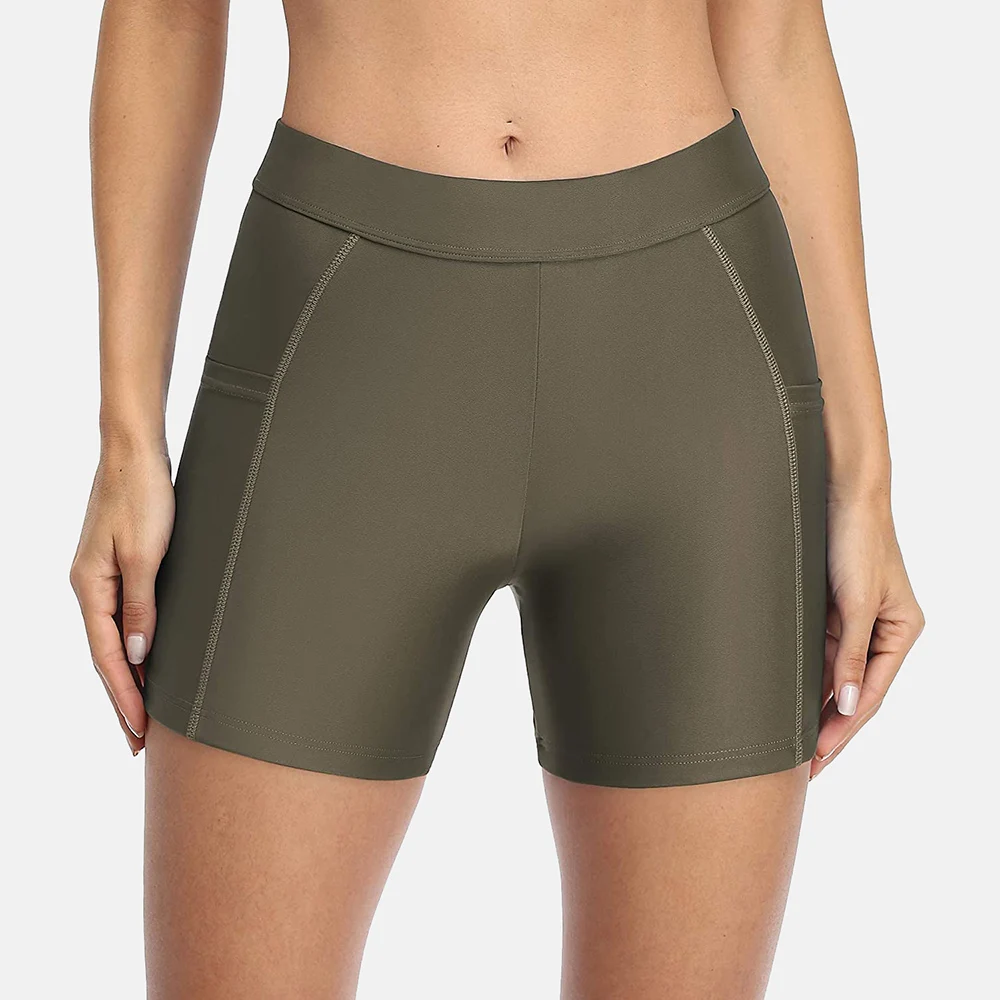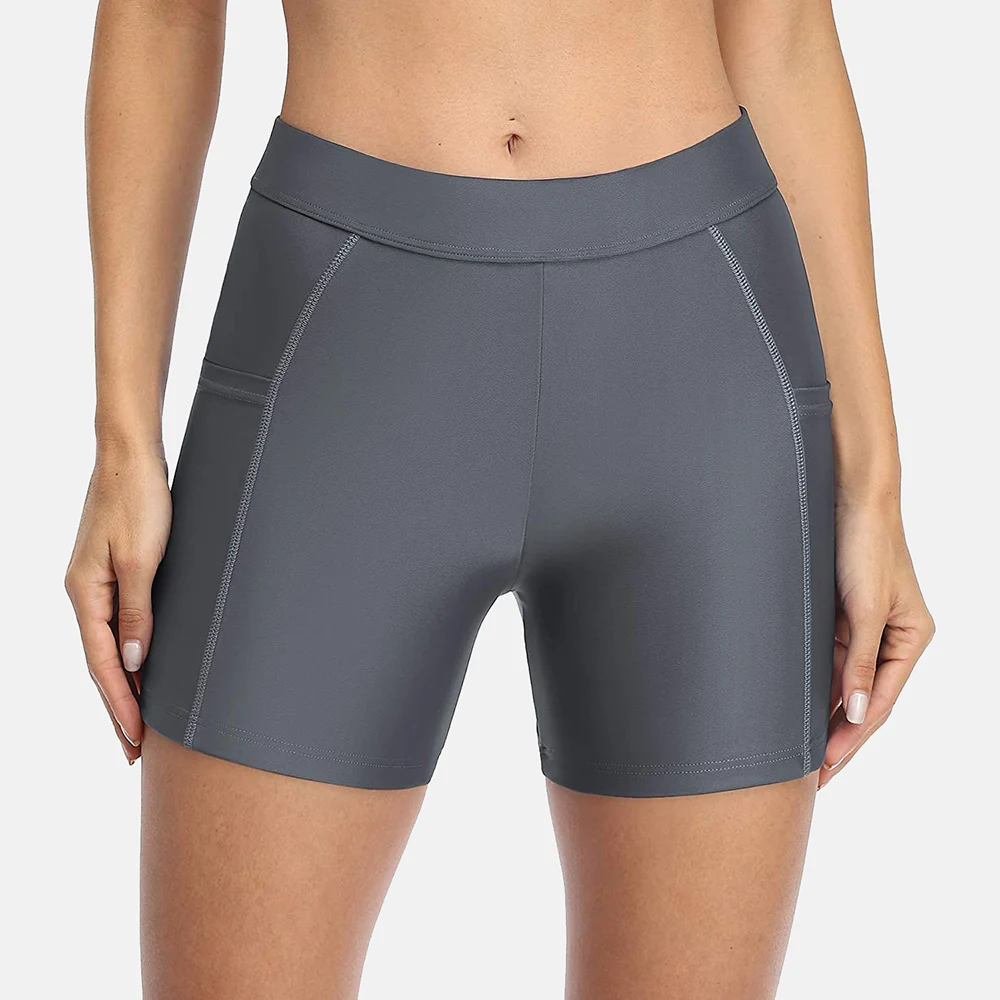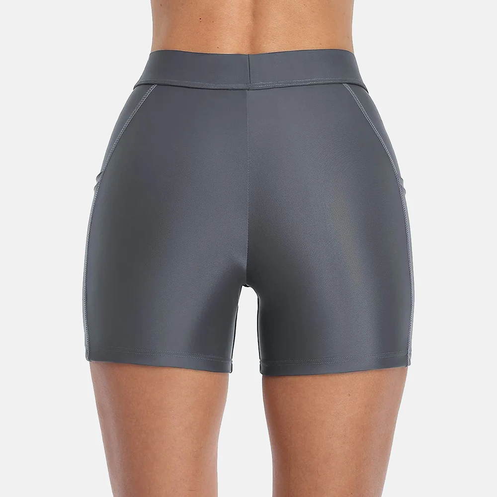 Attraco Women Sports Swimming Trunks Ladies Bikini Bottom Boy Shorts Slim Patchwork Skinny Swim Shorts Swimwear Briefs