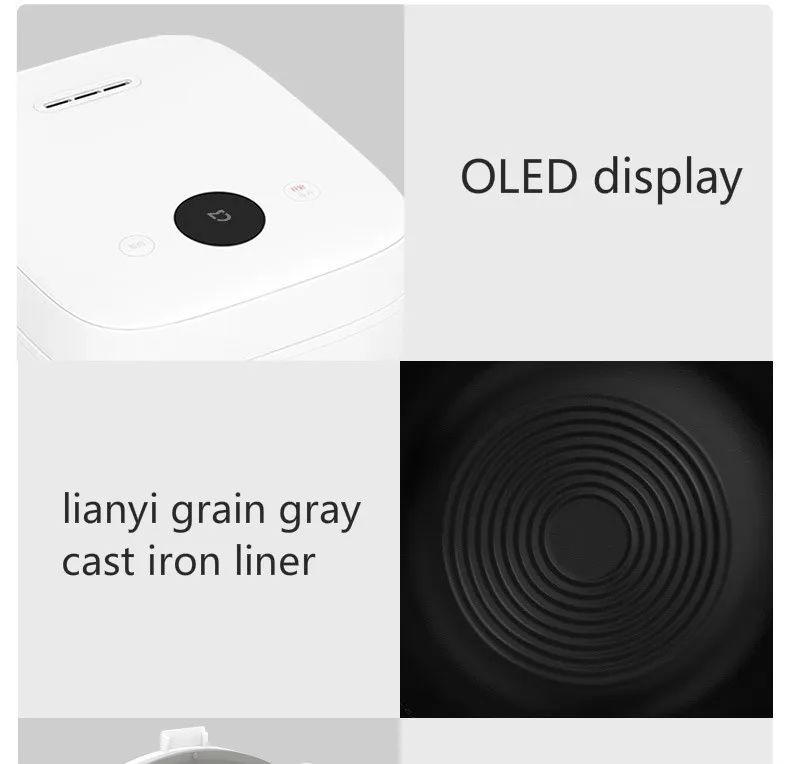 Рен шигуан спешил, то же самое-это прикрепление к миске риса с бомбой Q. Смелый прогресс, серый чугунный вкладыш структура обновления, lianyi шаблон дизайн на дне, чтобы повысить эффект нагрева, рис вкус хорошо! Все подключено, одноклассники Xiaoai умно контролируются. Вы можете управлять умной рисоваркой, чтобы готовить рис голосом. Прибыла умная кухня! В intelligent era, использование нового oled-экрана на крышке приносит освежающий интерактивный опыт, и есть бесчисленные возможности на экране. Фокусируйтесь на полировке и обновлении качества.