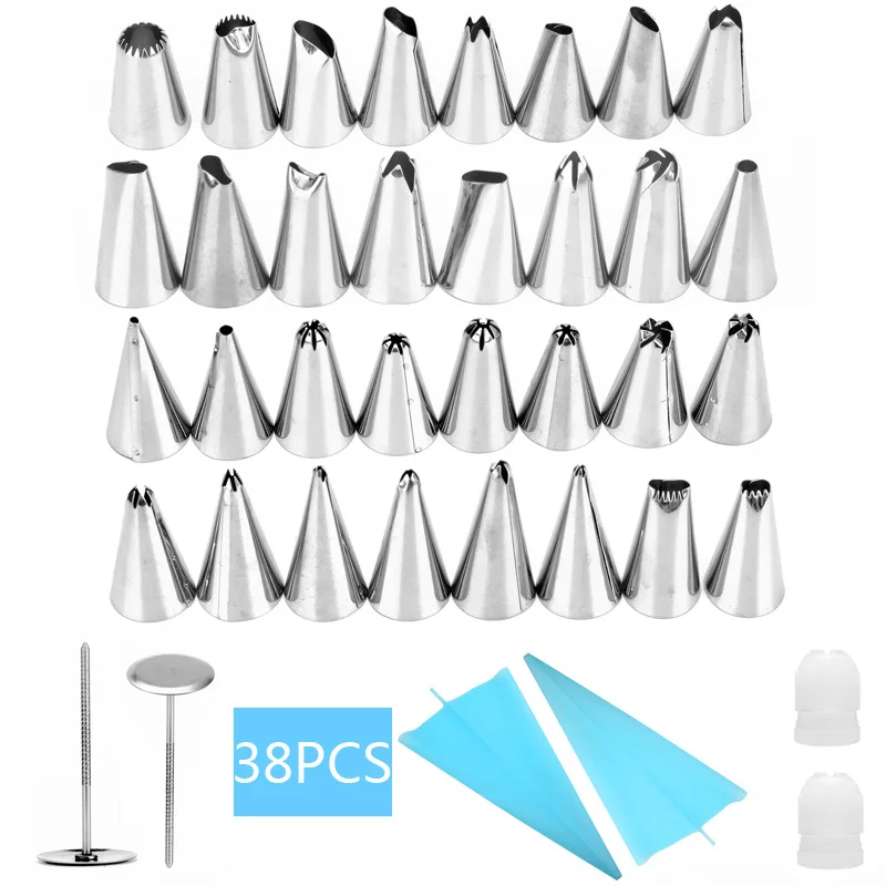 Тип: инструмент для выпечки Материал: нержавеющая сталь + пластик Количество: 38 шт. Цвет: как на картинке Ящик для хранения Размеры: 19,5*13*3,8 см/7,7*5,1*1,5 "(L * W * H) Чистая Вес: 0,25 кг/8,2 oz Посылка: 32 * трубные сопла 2 * Силиконовый мешочек для сладостей (12 дюймов) 2 * сцепного устройства 2 * кондитерских гвоздя 1 * ящик для хранения