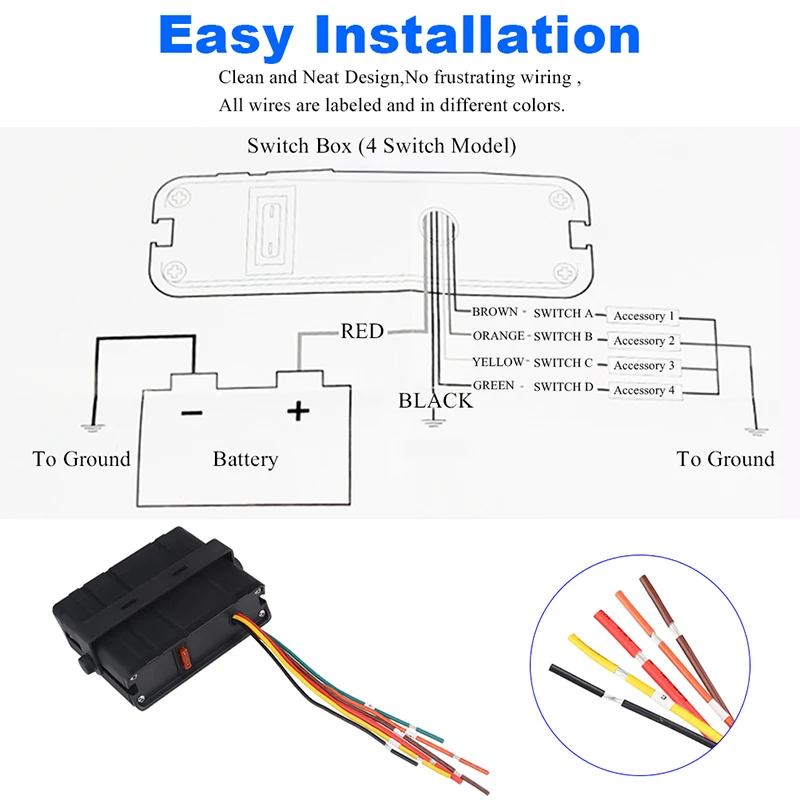 2. Простая установка-чистый и аккуратный дизайн: не разочаровывает проводку. Имея только один источник питания и заземляющий провод на схему, все провода маркируются и имеют разные цвета, мы сделали еще проще установить ваш новый блок выключателя. Это может решить проблему монтажа и модификации автомобильных фар.
