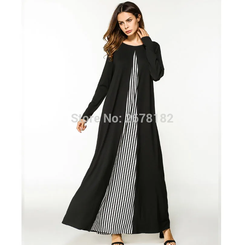 Повседневное платье в полоску Abaya, мусульманское платье средней длины, платья для женщин, женское платье