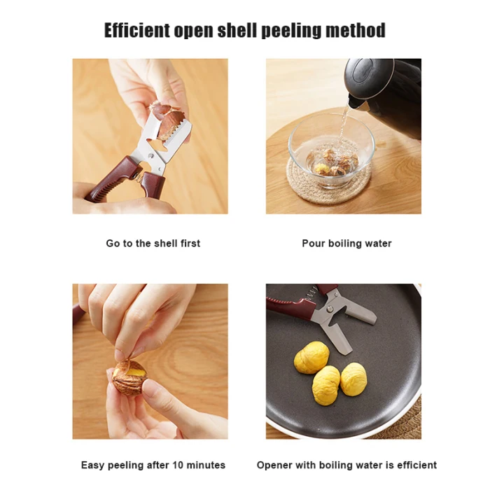 1. Thoughtful design, double cutter edges: Husking does not hurt hands, food good helper, easy to peel chestnut, can quickly remove the shell.