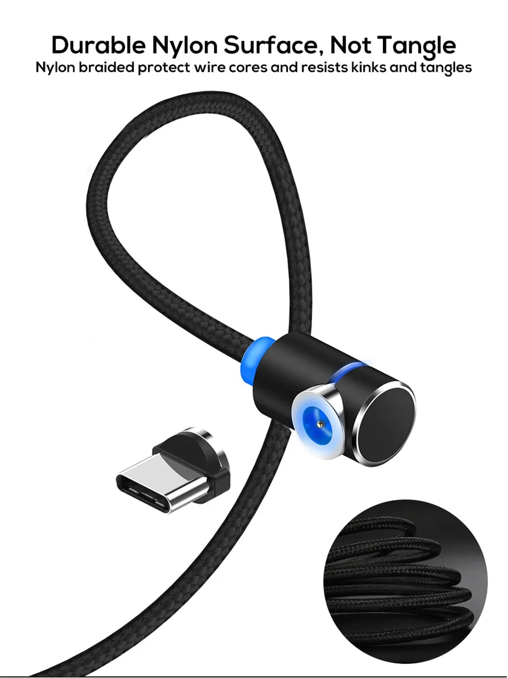 L Тип 90 градусов 1 м Магнитный кабель USB для Type C кабель СВЕТОДИОДНЫЙ Магнитный зарядный кабель