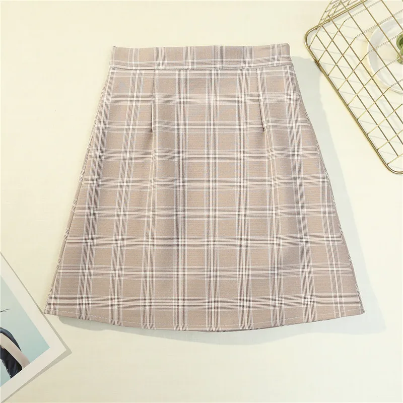 2020 корейский стиль клетчатая юбка WF0078 Высокая талия тонкий желтый серый хаки Летняя короткая мини-юбка для стройной девочки
