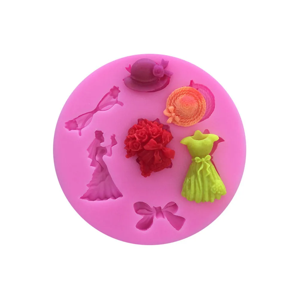 Product name: skirt hat sunglasses bow beauty silicone cake mold cake cup decoration chocolate jelly mold Size: about 8.5 * 1CM Weight: about 65 grams Packaging: OPP bag Material: brand new food grade silicone Temperature support: -40 degrees to 230 degrees Uses: make cakes, breads, mousses, jellies, prepared foods, chocolates, ice cubes, puddings, jellies, chocolates, cakes, handmade soaps, moon cakes, rice balls, fondant, etc.