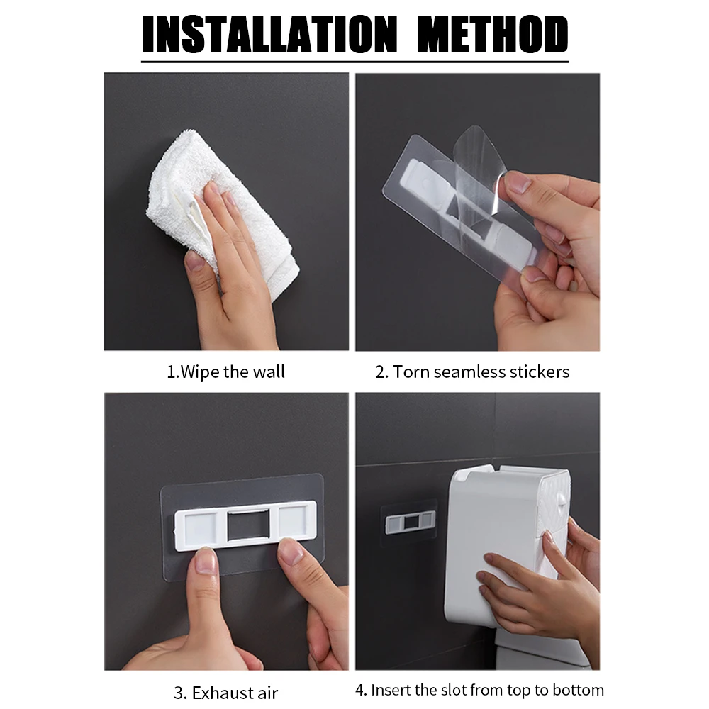 [Easy Installation]Wall mounted tissue dispenser with seamless stickers that work well in keeping stable situation, widely fit for most flat surfaces, like wood, glass, metal surfaces.