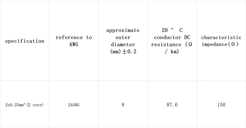 Параметры/ссылкой на AWG/приблизительный Наружный диаметр (мм) ± 0,2/20 ° C проводник постоянного тока сопротивление (Ом/км)/волновое сопротивление (Ом)