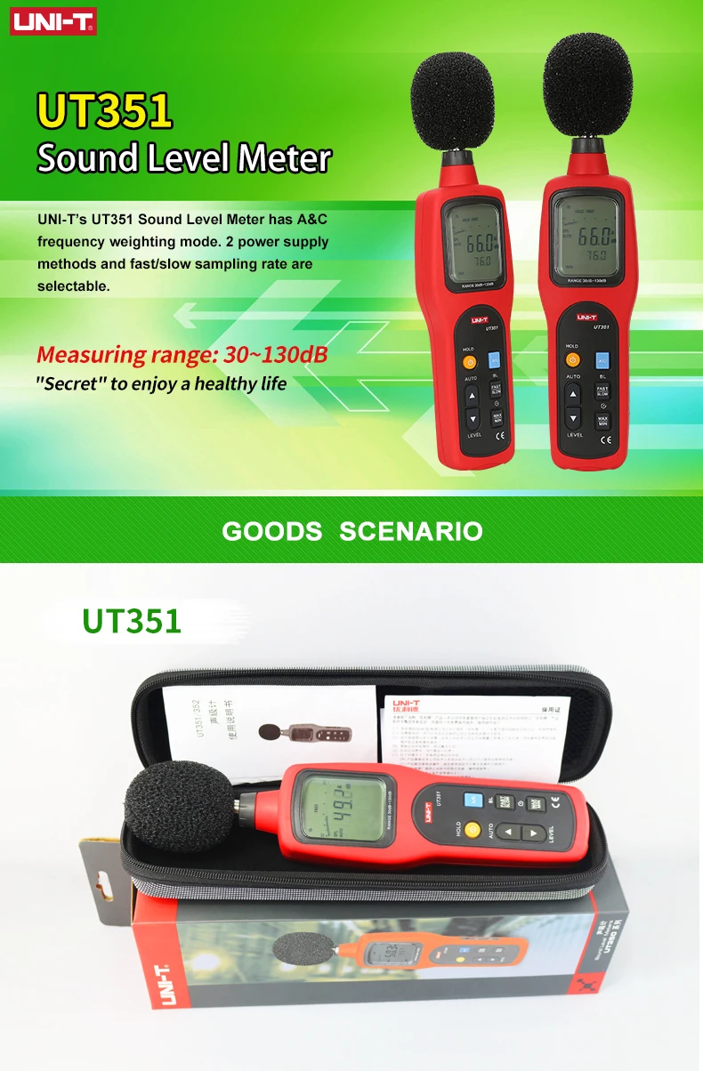 UNI-T UT351 цифровой измеритель уровня звука 30-130дб децибел измеритель шума Тестер имеет A & C частота взвешивания/быстрый/медленный частота образца
