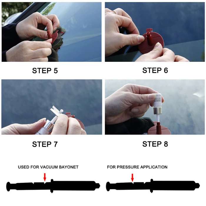 1. Пожалуйста, припаркуйте автомобиль в помещении и запрещайте все УФ-лучи (преждевременное отверждение ремонтной жидкости = сбой).