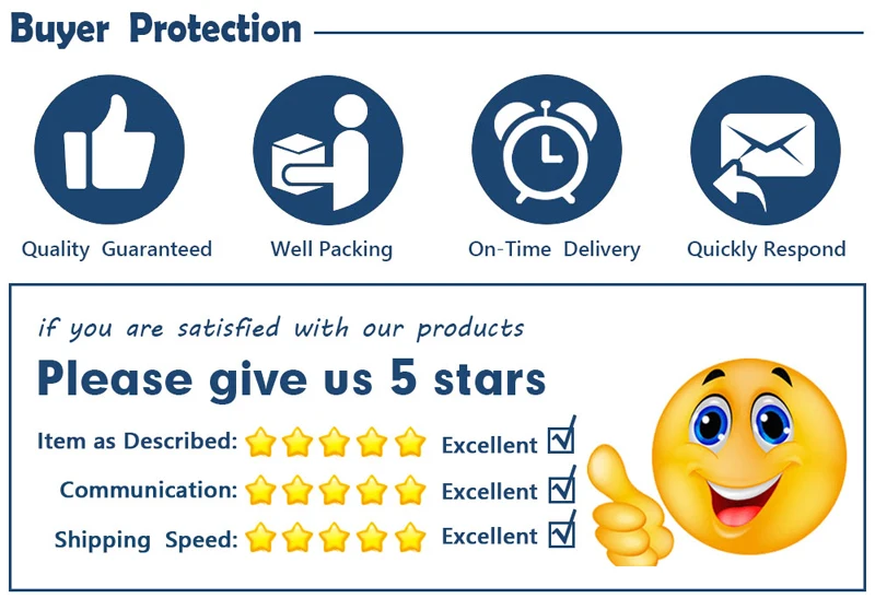Способ оплатыМы принимаем оплату ESCROW(alipay). Пожалуйста, Произведите оплату после покупки. Мы организуем доставку как можно скорее.ДоставкаДоставка по всему миру. За исключением некоторых отдаленных районов. Мы отправляем только на подтвержденный адрес заказа. Пожалуйста, убедитесь, что ваша доставкаАдрес указан верно при оплате. Если вы не получили посылку в течение 30 дней после оплаты, пожалуйстаСвяжитесь с нами, мы Отследим доставку и свяжемся с Вами в кратчайшие сроки!ОтзывыНаш успех зависит от Aliexpress репутации и удовлетворенности клиентов. Поэтому ваши отзывы и оценкиОчень важно для нас, так как лучшие оценки влияют на расположение поиска на Aliexpress.Свяжитесь с намиНаше рабочее время: Пекинское время с 8:30 до 00. Мы не работаем в праздничные дни в Китае (воскресенья, государственные праздники).Если вы отправите нам электронные письма, мы возобновим работу в течение 24 часов.Если вы не удовлетворены продуктом или обслуживанием, пожалуйста, свяжитесь со мной и не оставляйте отрицательный или нейтральный отзыв, мы постараемся сделать все возможное, чтобы предоставить вам удовлетворительное решение.