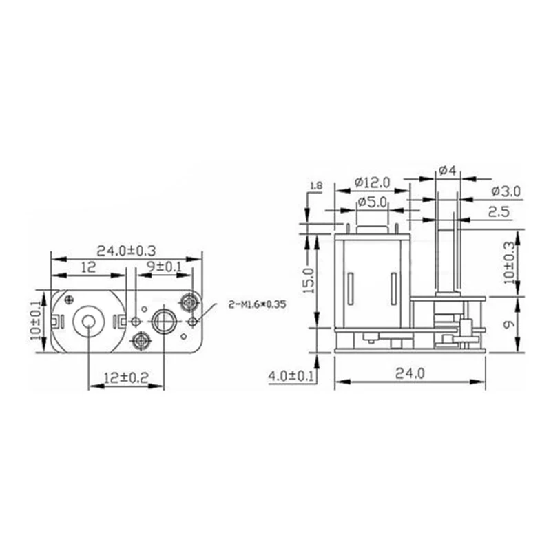 Скорость без нагрузки 800 об/мин, скорость нагрузки 700 об/мин, номинальный крутящий момент 0,35 кг. См, номинальный ток 0.16A, крутящий момент 3 кг. См, ток стойла 0.4A, коэффициент уменьшения (1:00) 30