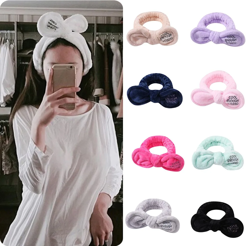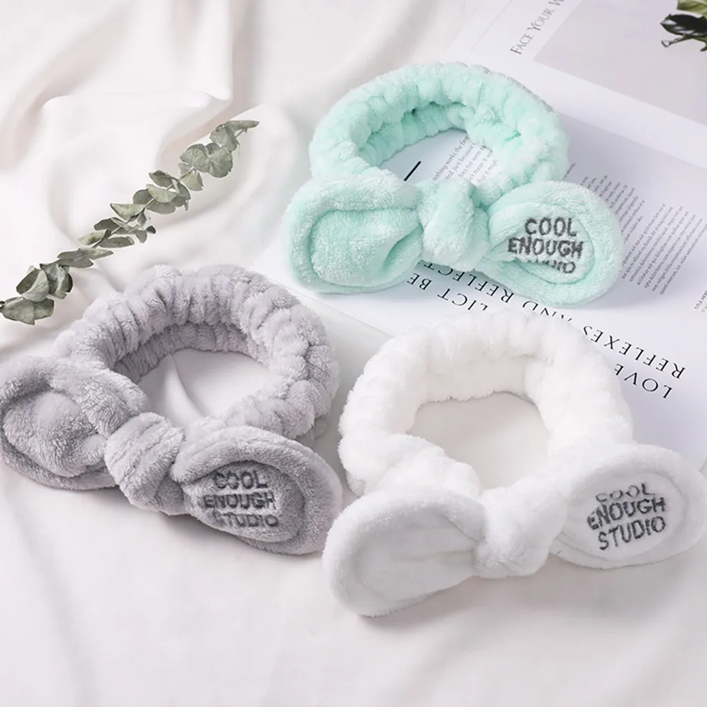 Узелковая кроличья Ушная моющаяся лицевая лента для волос для нанесения макияжа зимние простые плюшевые ободки для волос