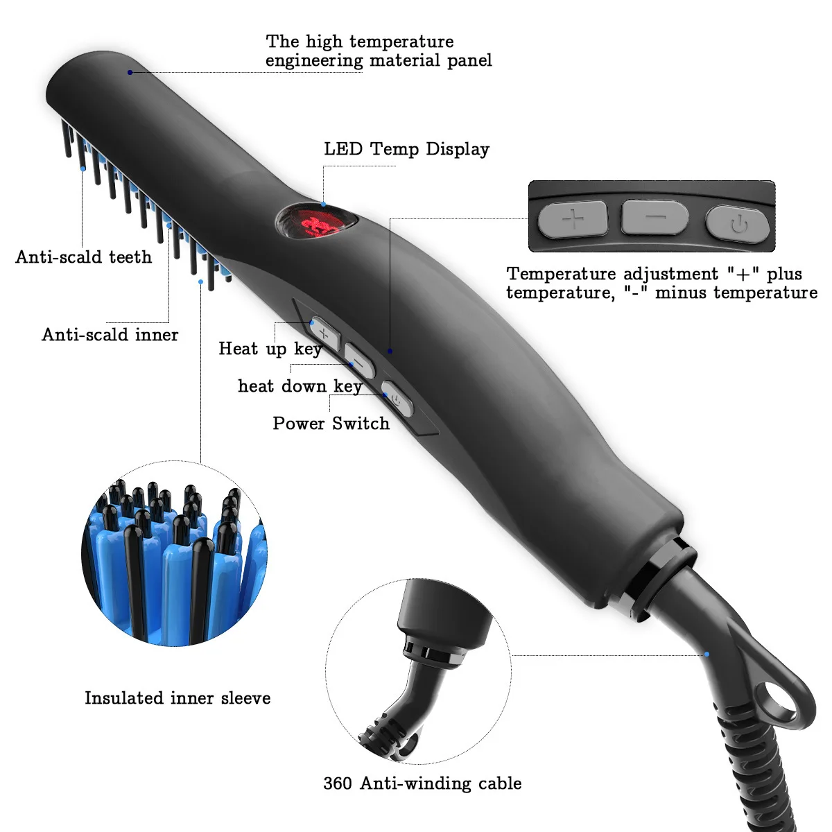 1.100% турмалиновая керамическая нагревательная пластина для более равномерного нагрева и хорошего Пермского эффекта 2. ЖК-жидкокристаллический цифровой дисплей 160-220 ° C, быстрый нагрев PTC, быстрый нагрев 3. Нагревательная пластина встроена в пластиковые зубцы гребня, что очень безопасно и не боится ожогов. 4. Нескользящая усовершенствованная теплоизоляционная ручка, остроконечная светильник Кая и портативная, очень подходит для путешествий. Функция автоматического отключения через 5,1 часов, безопасная и экологически чистая 6. Ручка соответствует дизайну руки человека; 7,220-240 В, двойное напряжение; 8. Вращающийся на 360 ° шнур питания длиной 2 м, удобный и простой в использовании