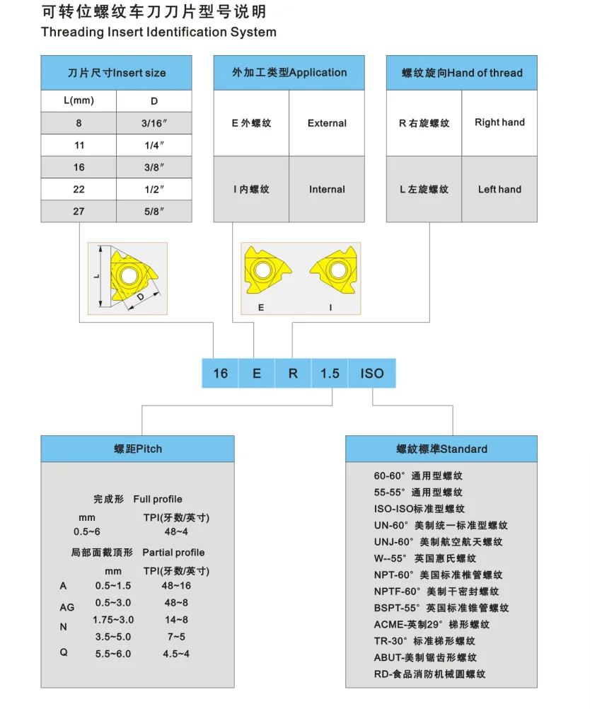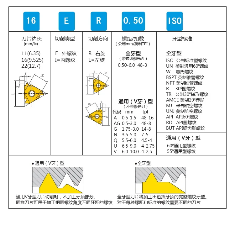 Токарный станок токарные инструменты карбидные вставки 16ER 16IR штампованные вставки лезвие 60 55 градусов Размер шага: A: 0,5 мм-1,5 мм G: 1,75 мм-3 мм AG: 0,5-3 мм 60 55 градусов Шаг --- A: 0,5-1,5 мм, Пример: 16ER A60 Степень: 60, размер шага: 0,5-1,5 мм