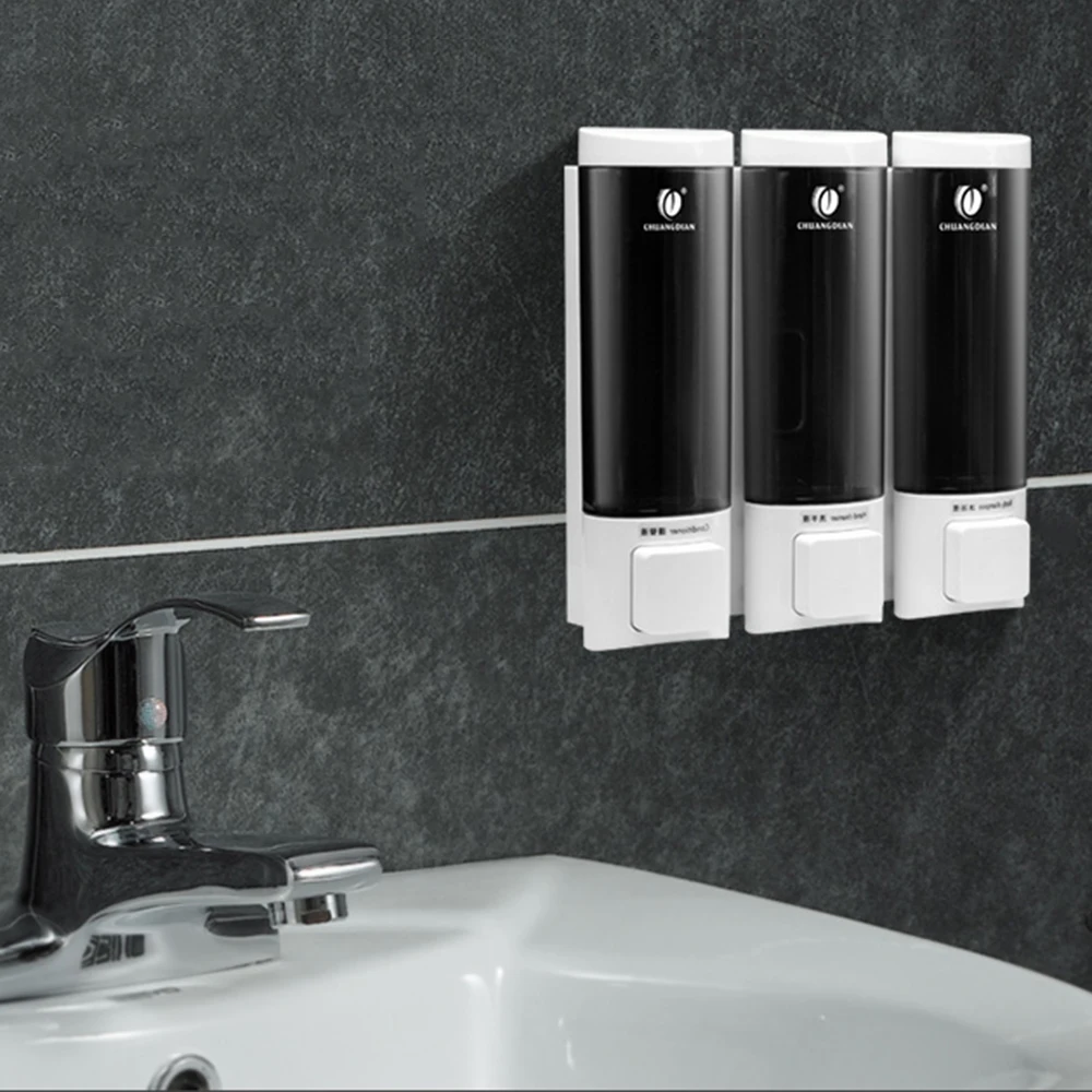 Трехкамерные диспенсеры для жидкого мыла изготовлены из нового и хорошего качества ABS, который является прочным, компактным и гладким. Насос предназначен для легкой откачки одной рукой. Разделенная насадка для жидкостей идеально подходит для предотвращения протекания и отходов. Идеально подходит для отеля, торгового центра, офисного здания, ванной комнаты, туалета, школы, детского сада, банков и других общественных мест.