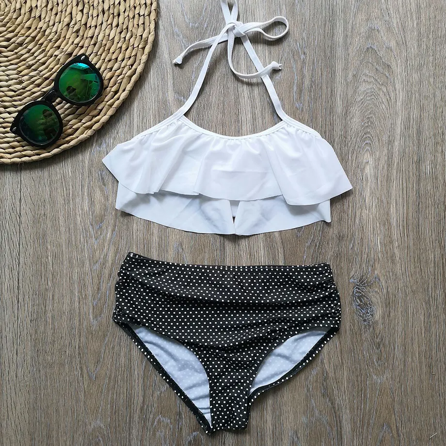 От 5 до 12 лет Купальник для девочек, детский купальник, Falbala, комплект бикини для девочек в горошек, детский купальник из двух предметов, купальный костюм для девочек, пляжная одежда
