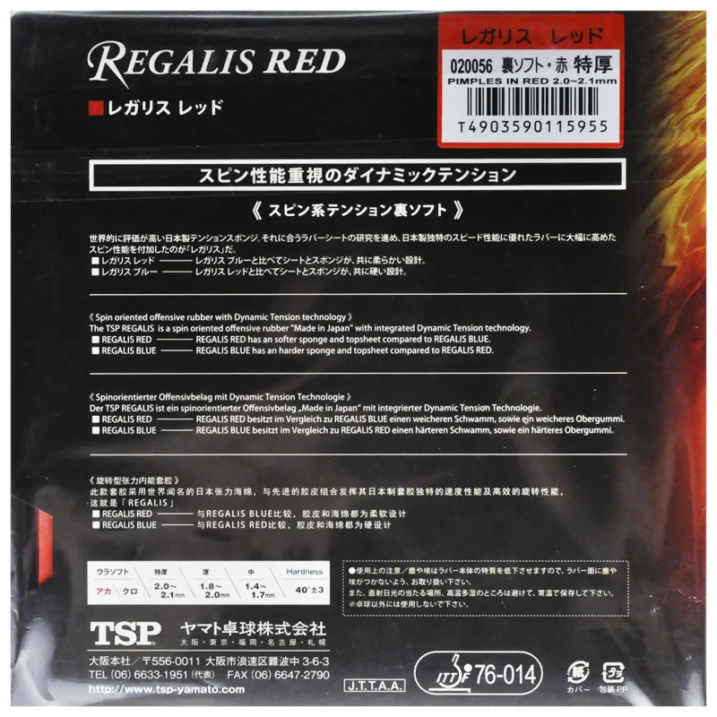 TSP Спорт Regalis красный (20056) Резина для настольного тенниса От официальных Тип Быстрая атака Уход за кожей лица Резиновые Прыщи В Толщина производительности: 2-2,1 мм TSP Спорт Regalis синий (20066) Резина для настольного тенниса От официальных Тип Быстрая атака Уход за кожей лица Резиновые Прыщи В Толщина производительности: 2-2,1 мм
