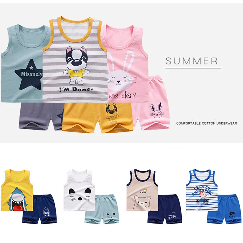 Infant baby clothing sets summer cotton sleeveless tops+short 2pcs kids vest suits sets baby boys girls clothes outfit A0093