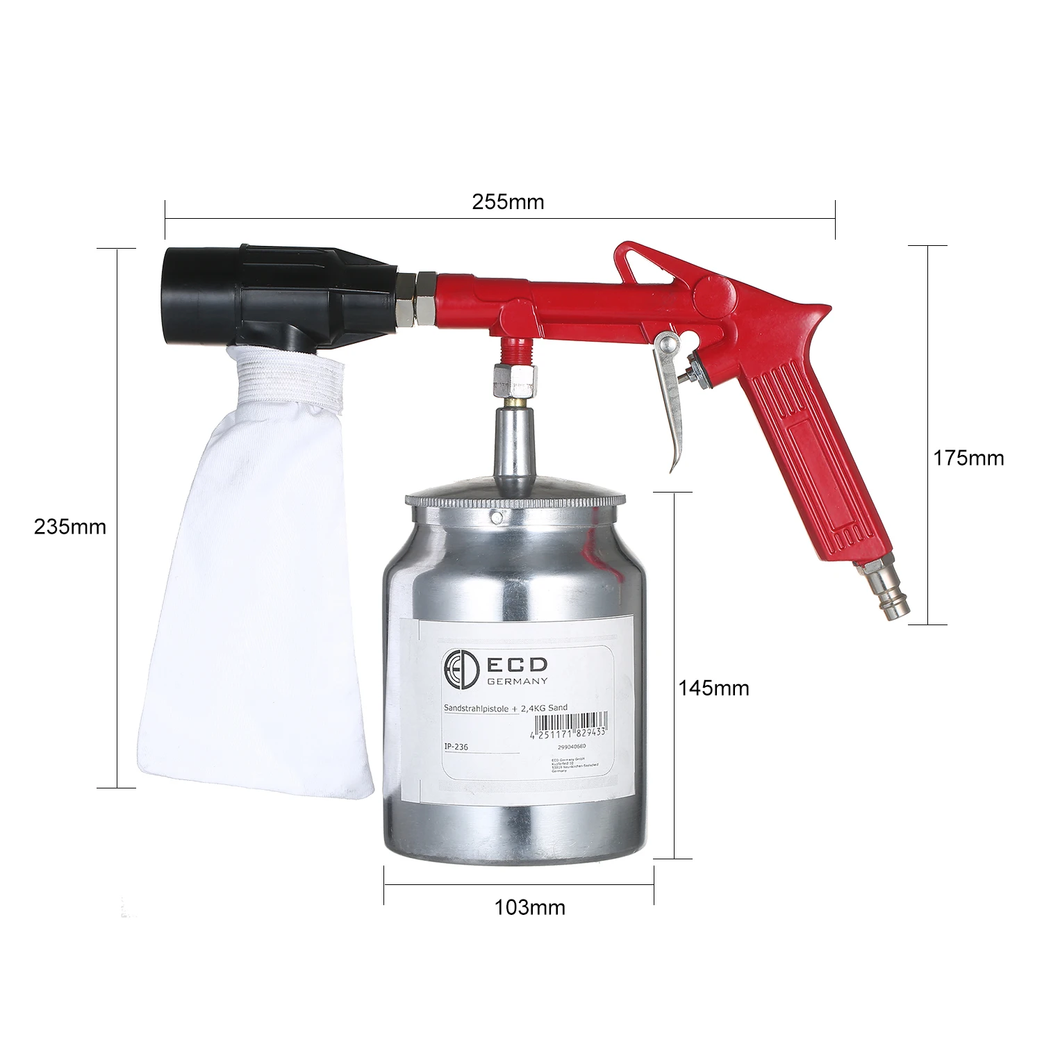Пневматический Пескоструйный пистолет поставляется с бутылкой пескоструйного абразивного песка, и разработан с мешком для восстановления песка, таким образом вы можете использовать его повторно.