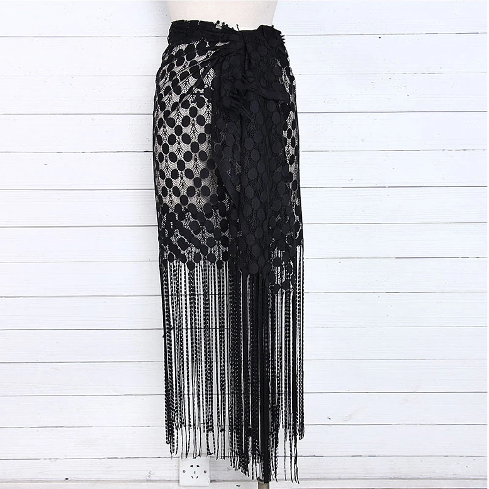 Однотонный узор в горошек, усиливающий эффект выреза,Сделайте ваше горячее тело более привлекательным и соблазнительным Цельное платьеИСвободный дизайн на пуговицах, можно использовать как платье без бретелек или юбку, без ограничений и свежести Длинные кисточки, окаймляющие ваше движение, сохраняют вашу нежность и женственность Подходит для платья с защитой от ультрафиолетового излучения, купального костюма, пляжного костюма и т. д. Изготовлен из полиэстера, не впитывает влагу и быстро сохнет