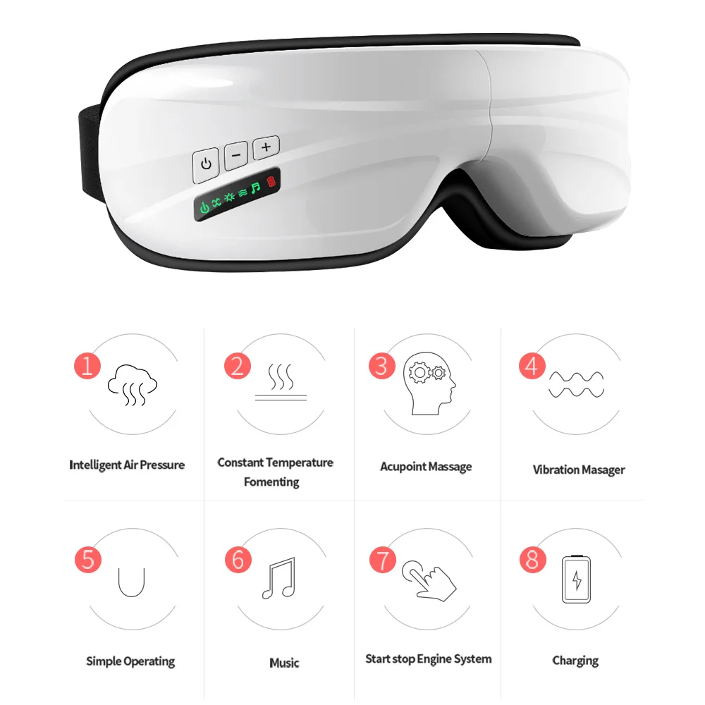 OLIECO USB термо Bluetooth музыкальный массажер для глаз беспроводной Горячий компрессионный Вибрационный Электрический массажер для глаз дорожная Складная машина