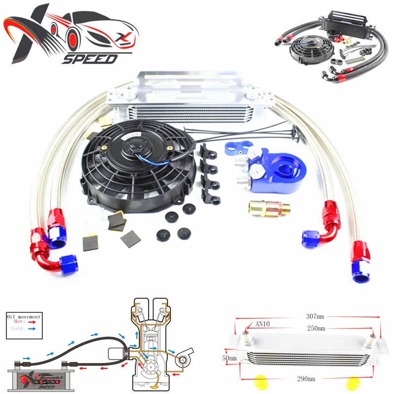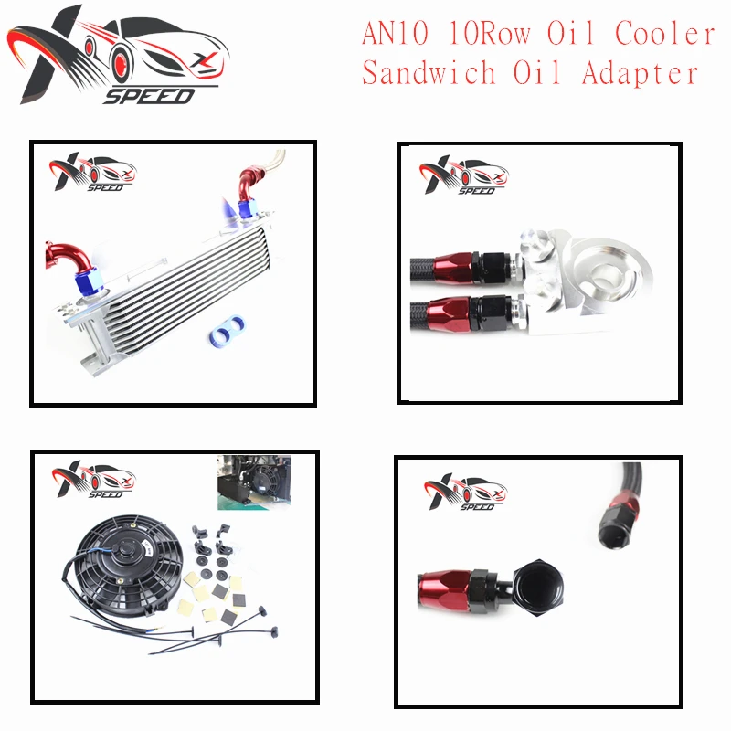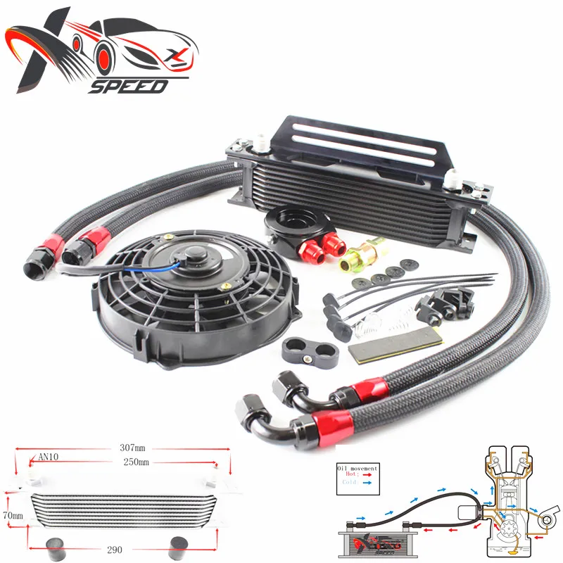 Универсальный Масляный радиатор 10 рядов + набор адаптера масла сэндвича + 7 "охлаждающий вентилятор + Масляный шланг + монтажный кронштейн