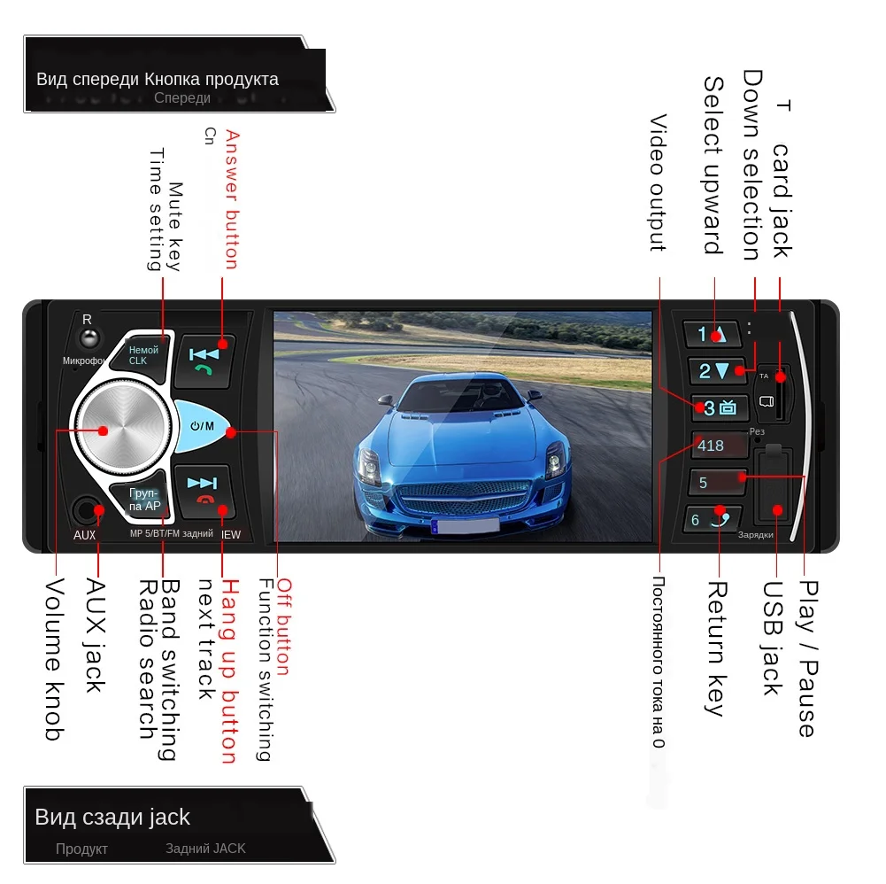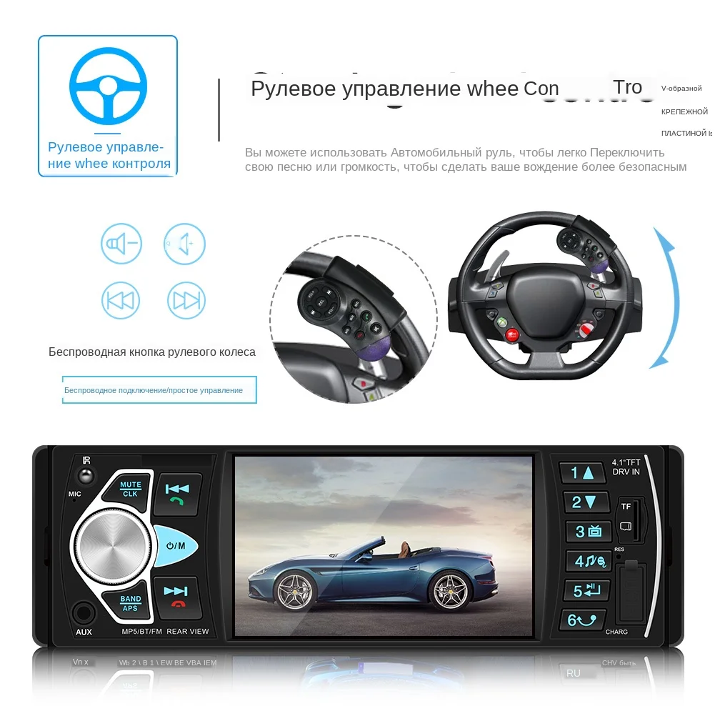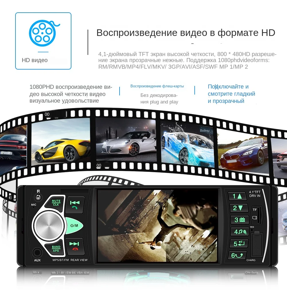 1 Din 4,1 дюйма цветной экран высокой четкости Автомобильный Mp5 плеер с громкой связью tf-карта u-диск радио FM Bluetooth Поддержка громкой связи